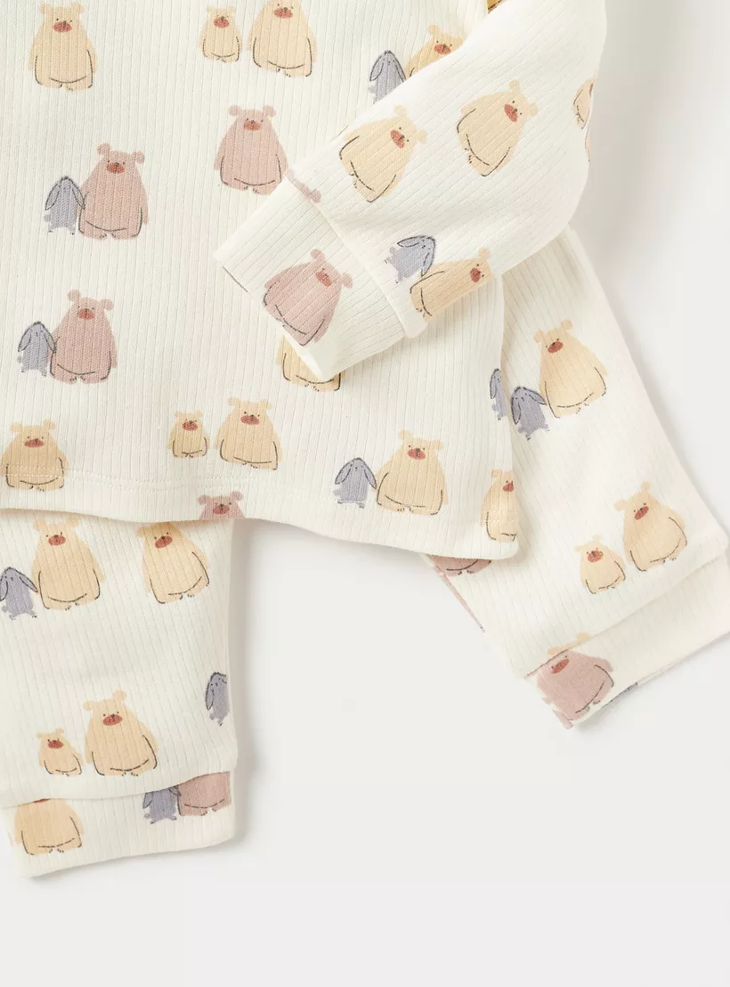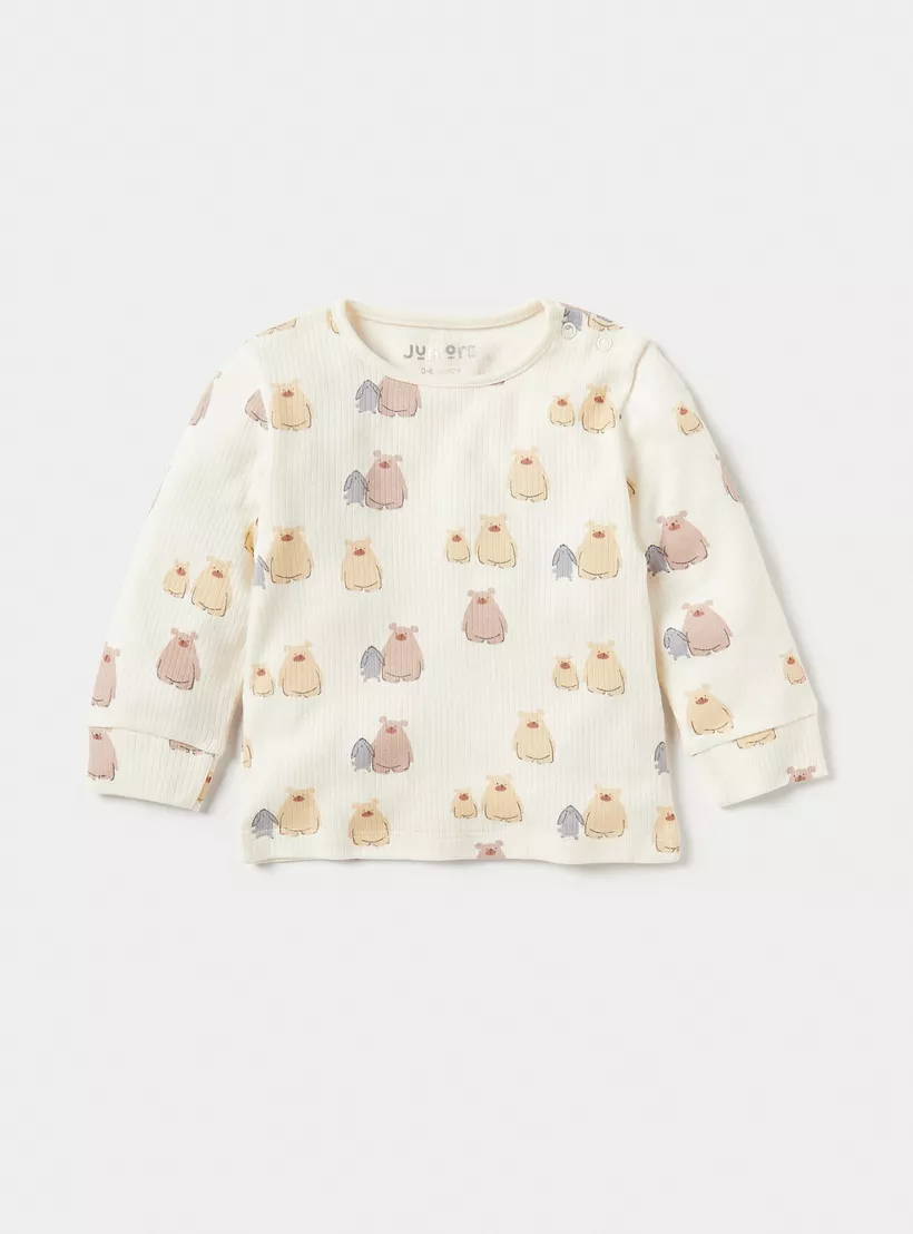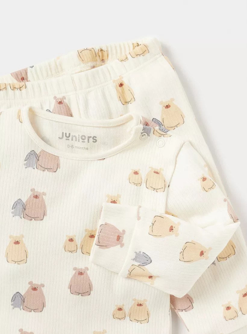 Juniors All-Over Bear Print Long Sleeves T-shirt and Elasticated Pyjama Set