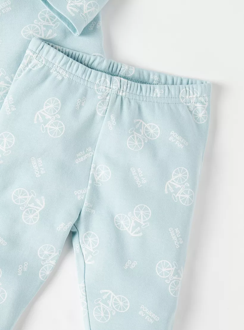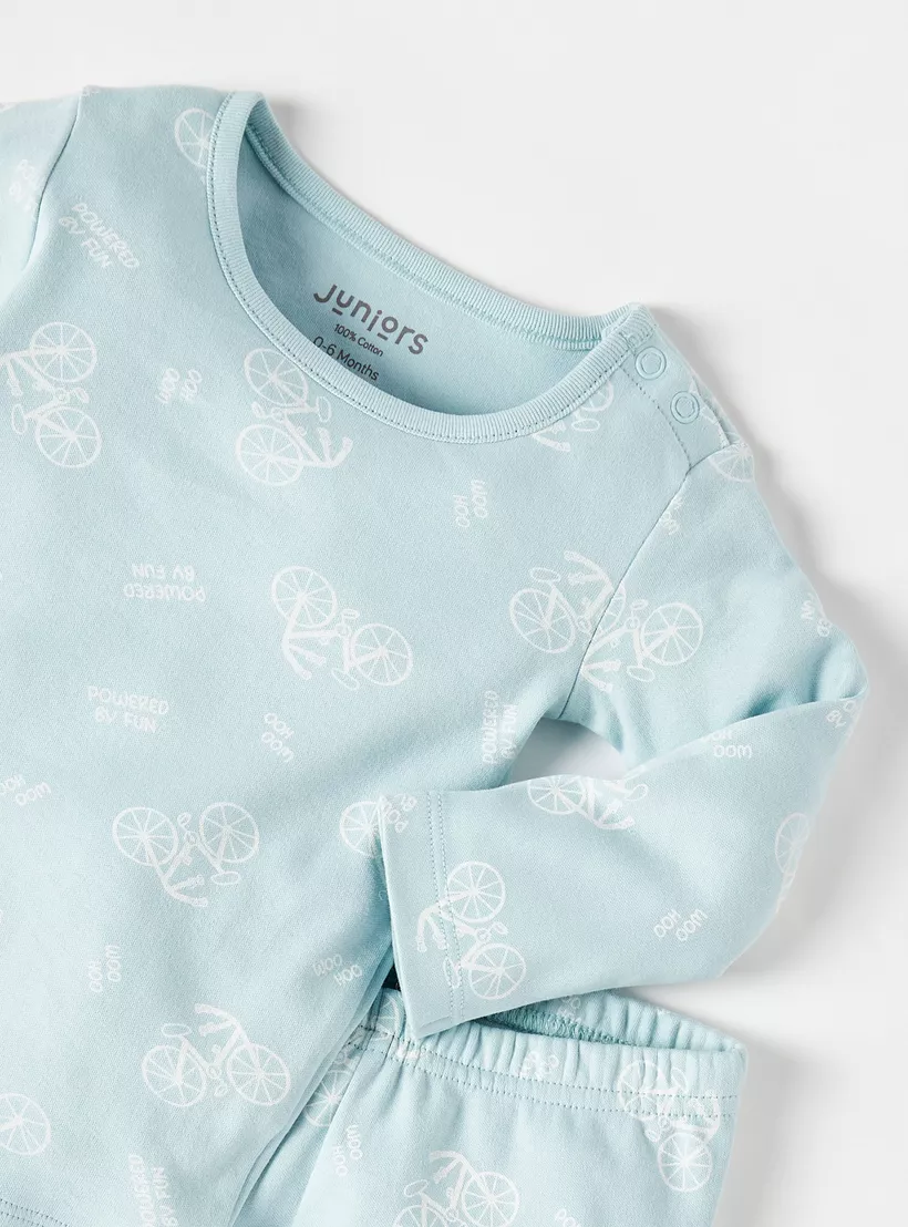 - Design: Adorable all-over bicycle print adds a playful touch to this T-shirt and pyjama set.