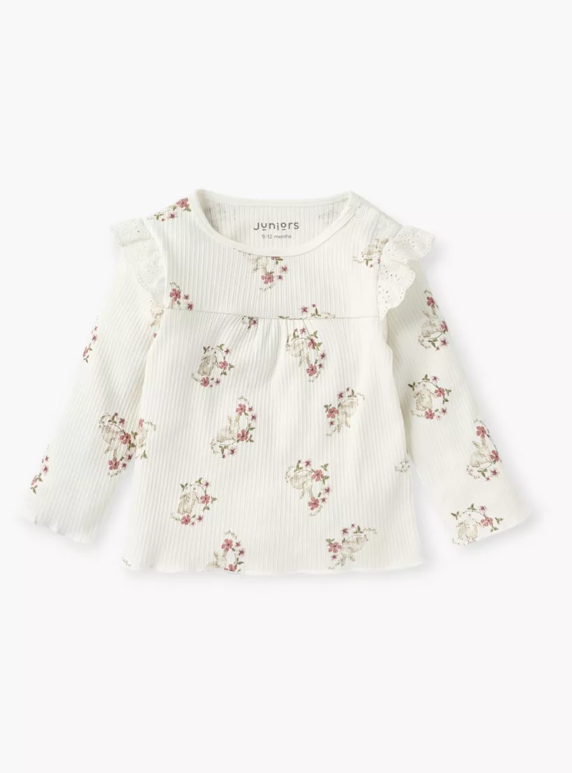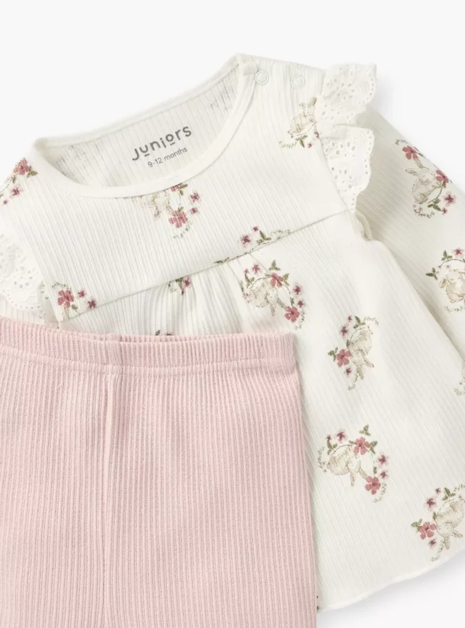 Juniors All-Over Bunny Print Long Sleeve Top and Pyjama Set