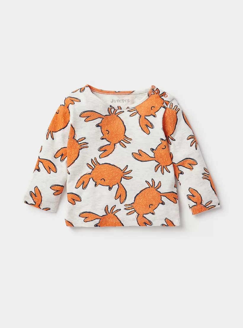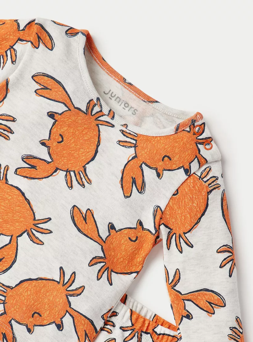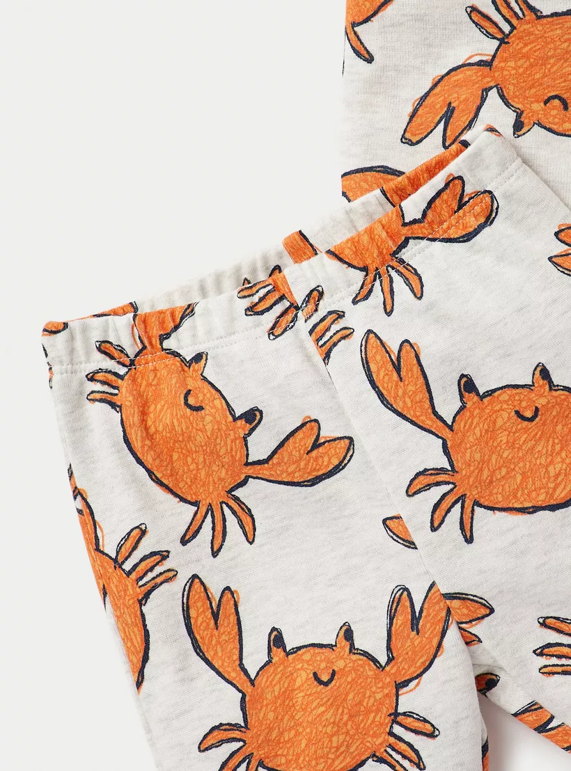 Juniors All-Over Crab Print Long Sleeves T-shirt and Pyjama Set