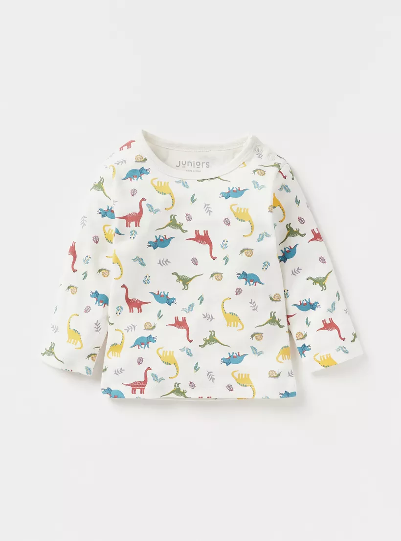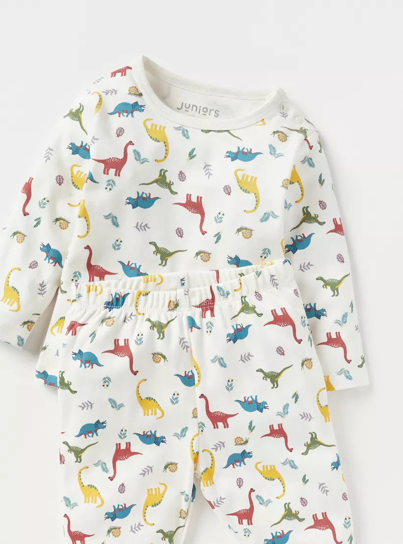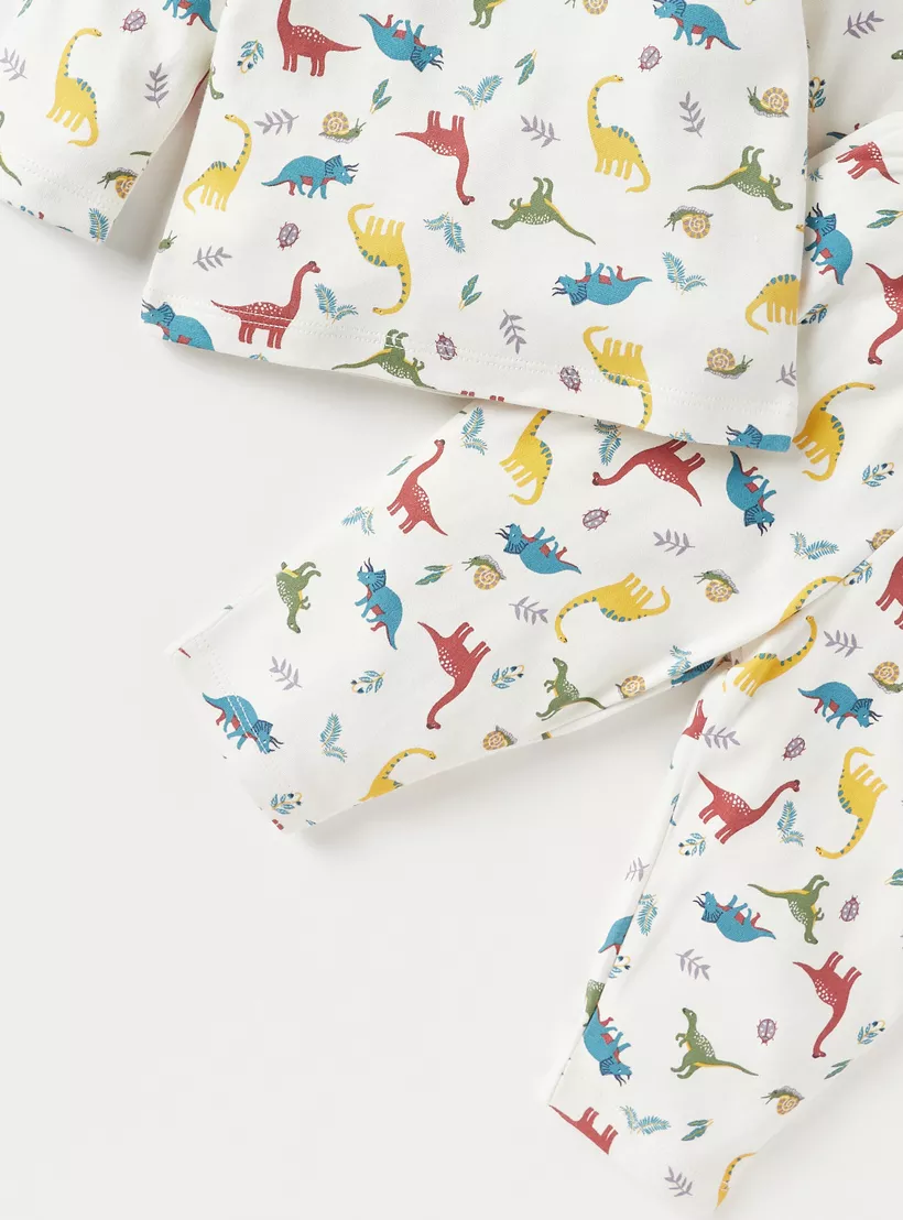 Juniors All-Over Dinosaur Print Long Sleeves T-shirt and Elasticated Pyjama Set