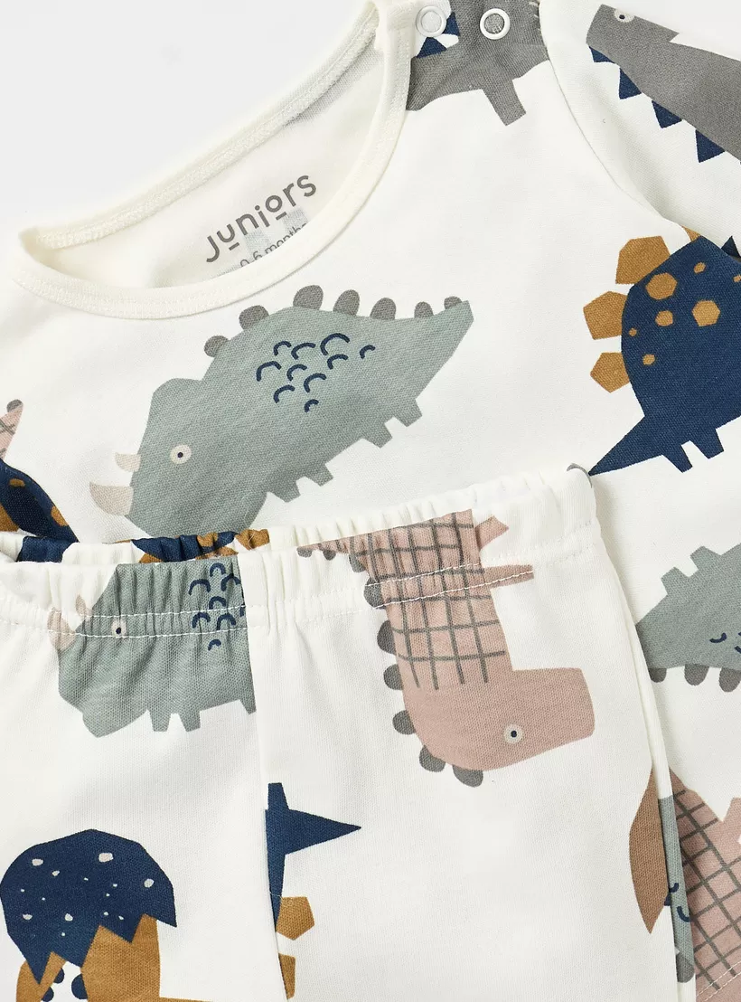 Juniors All-over Dinosaur Print T-shirt and Pyjama Set