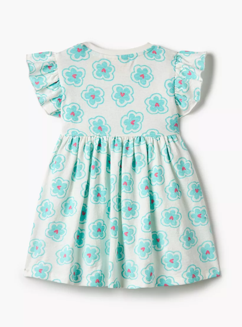 Juniors All-Over Floral Print A-line Dress with Round Neck and Flutter Sleeves
