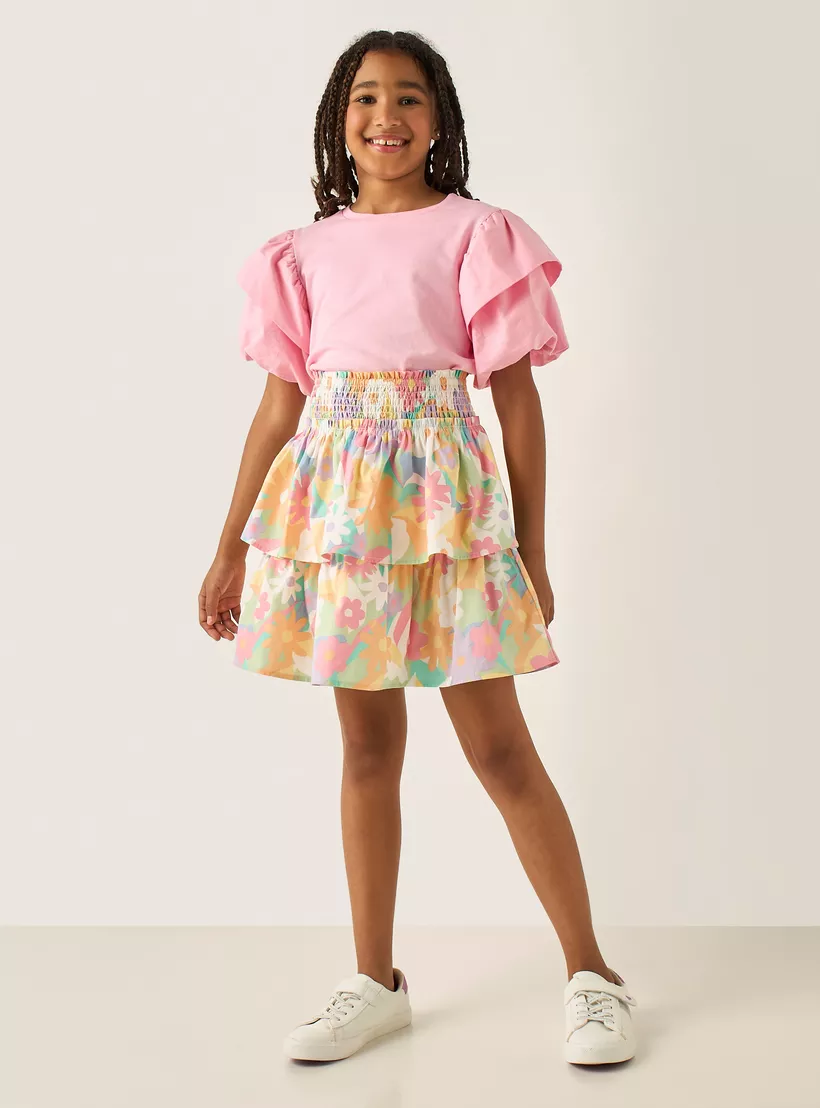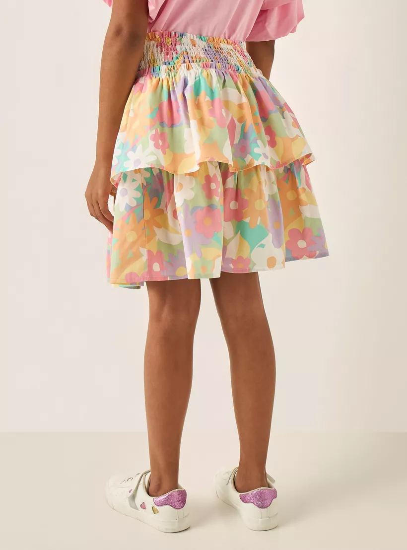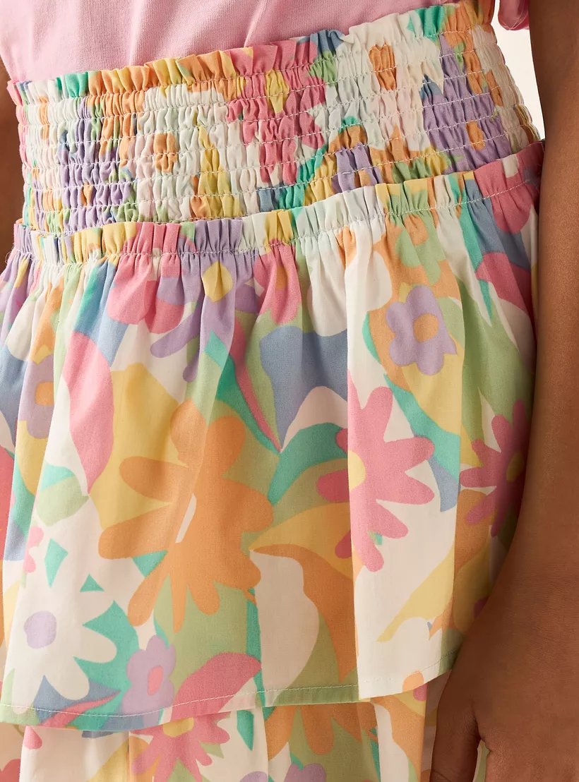 Juniors All-Over Floral Print Cotton Skirt with Shirred Waistband
