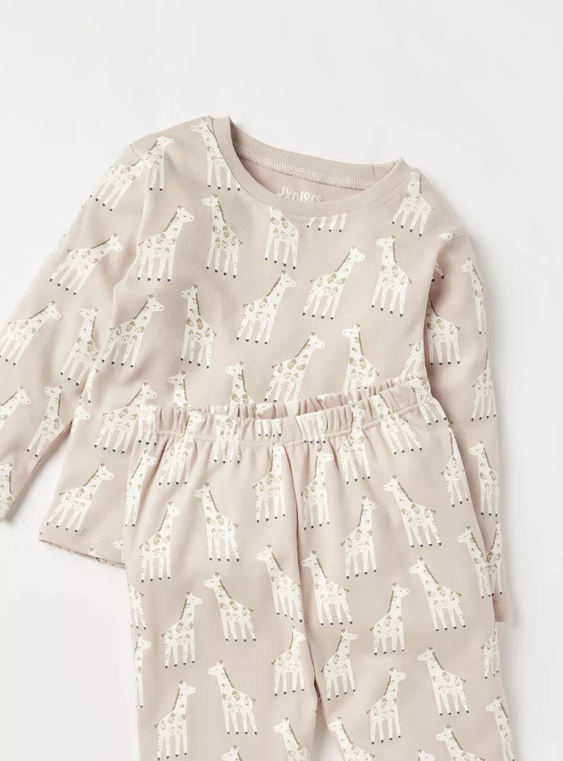 Juniors All-Over Giraffe Print Cotton T-shirt and Pyjama Set
