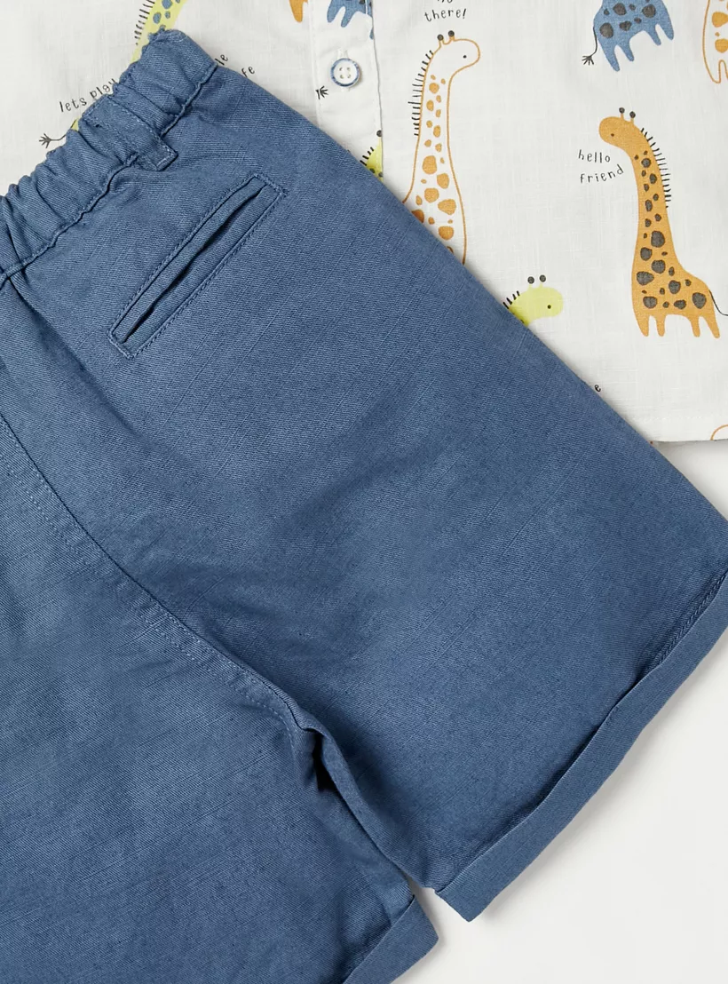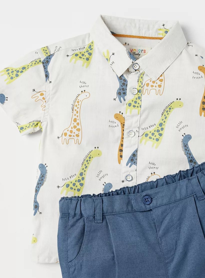 Juniors All-Over Giraffe Print Shirt and Shorts Set