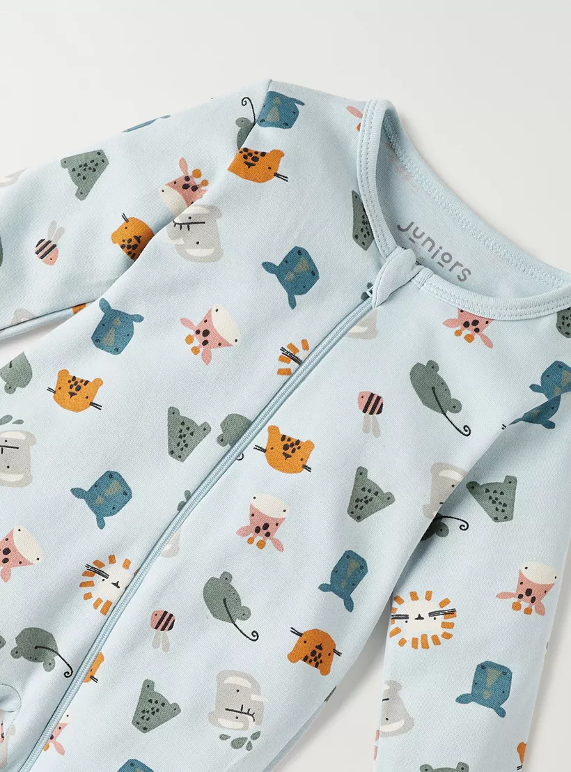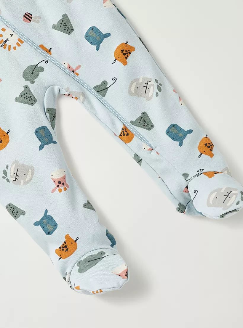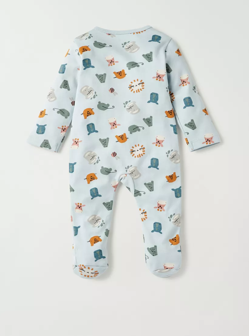 This adorable baby sleepsuit is made from soft, breathable cotton. It features a printed safari animal design and an easy-to-use snap closure. Perfect for keeping your little one cosy and comfortable all night long.