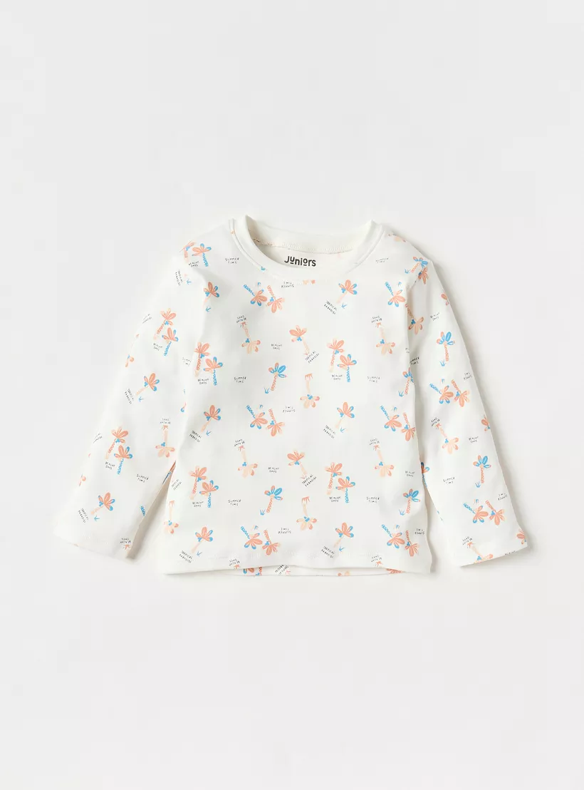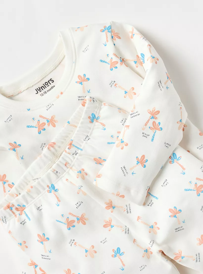 Your little one will look cute and cosy in this Juniors pyjama set. It features an all-over tree print and comes with a T-shirt and matching pyjamas. The set is made from cotton for a soft and comfortable feel.