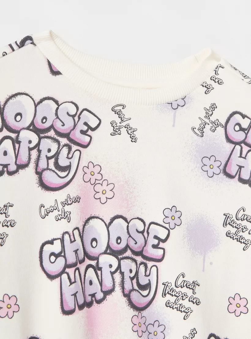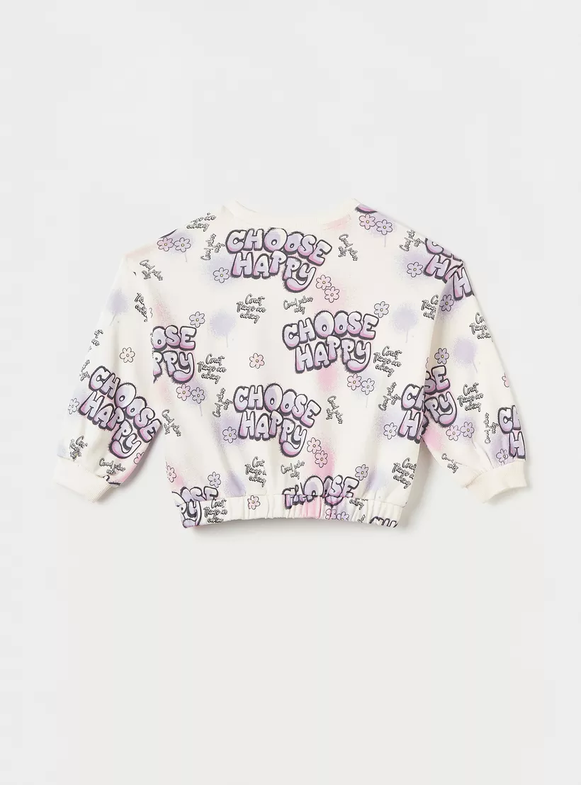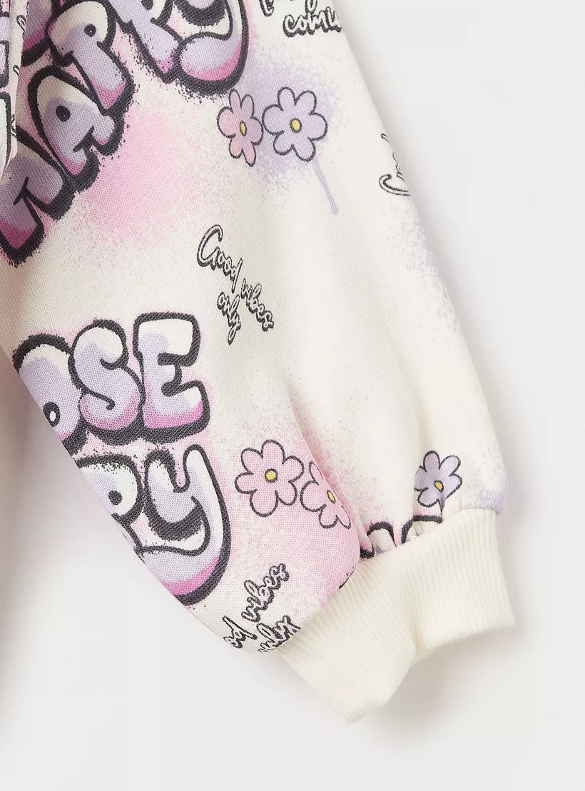 Juniors All-Over Typographic Print Sweatshirt with Long Sleeves