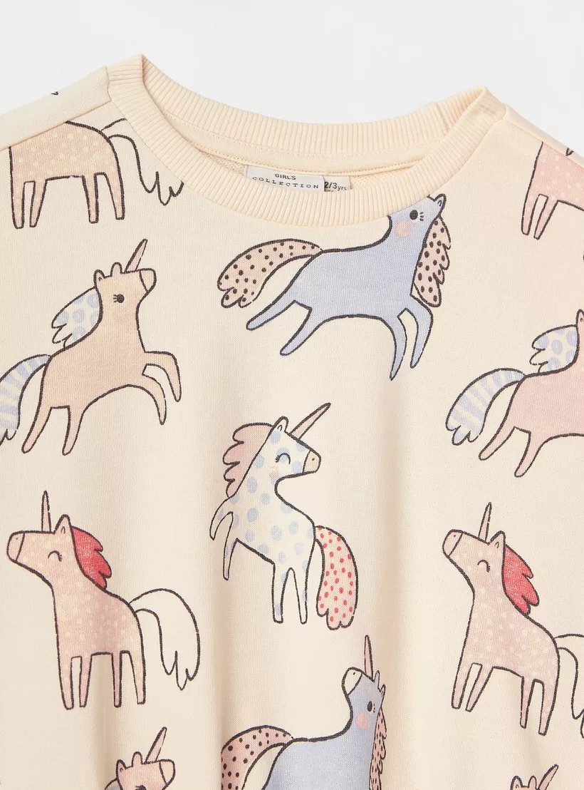 Juniors All-Over Unicorn Print Sweatshirt with Long Sleeves