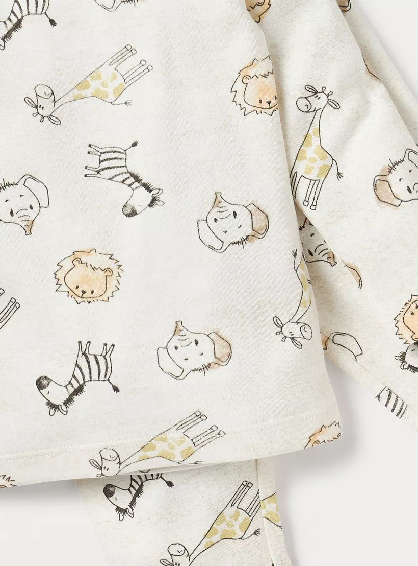 • All-Over Safari Print: Featuring a playful and vibrant safari-themed print that adds a touch of adventure to your baby’s wardrobe.