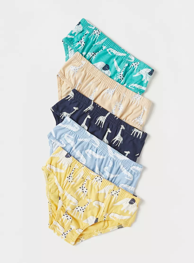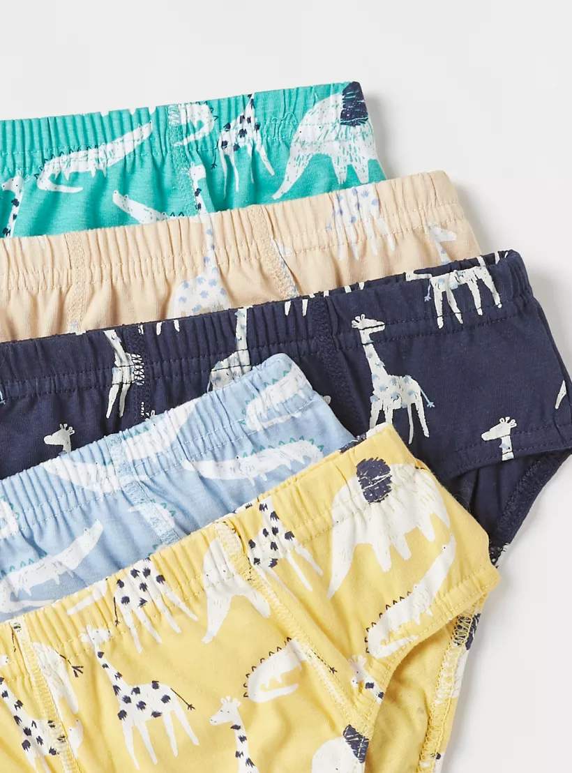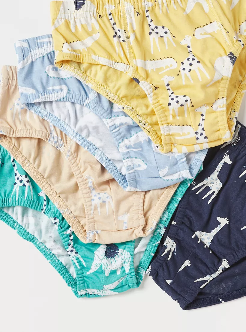 Juniors Animal Print Briefs with Elasticated Waistband – Set of 5