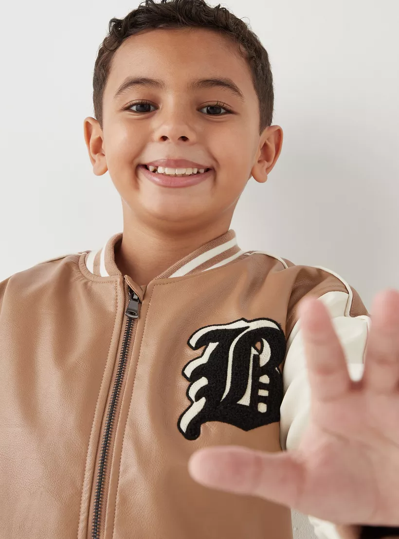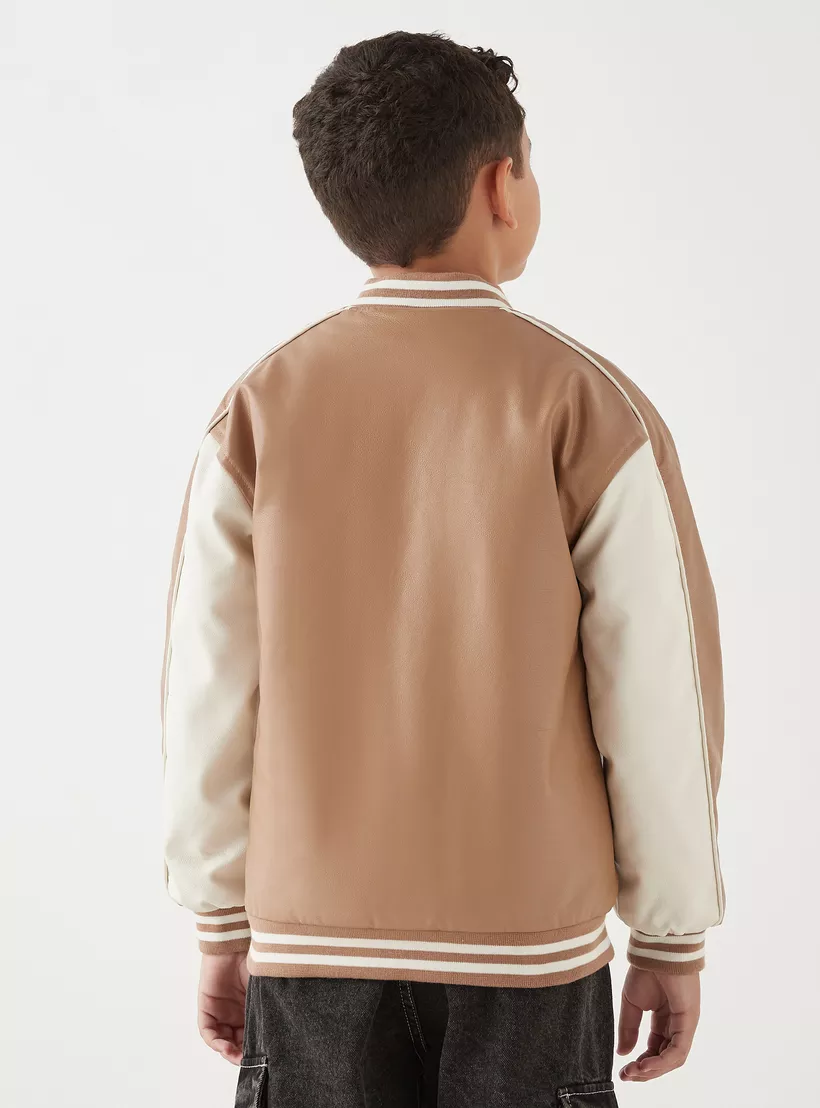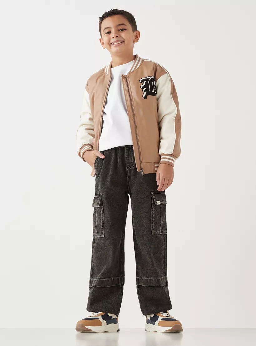 Juniors Applique Detail Bomber Jacket with Zip Closure