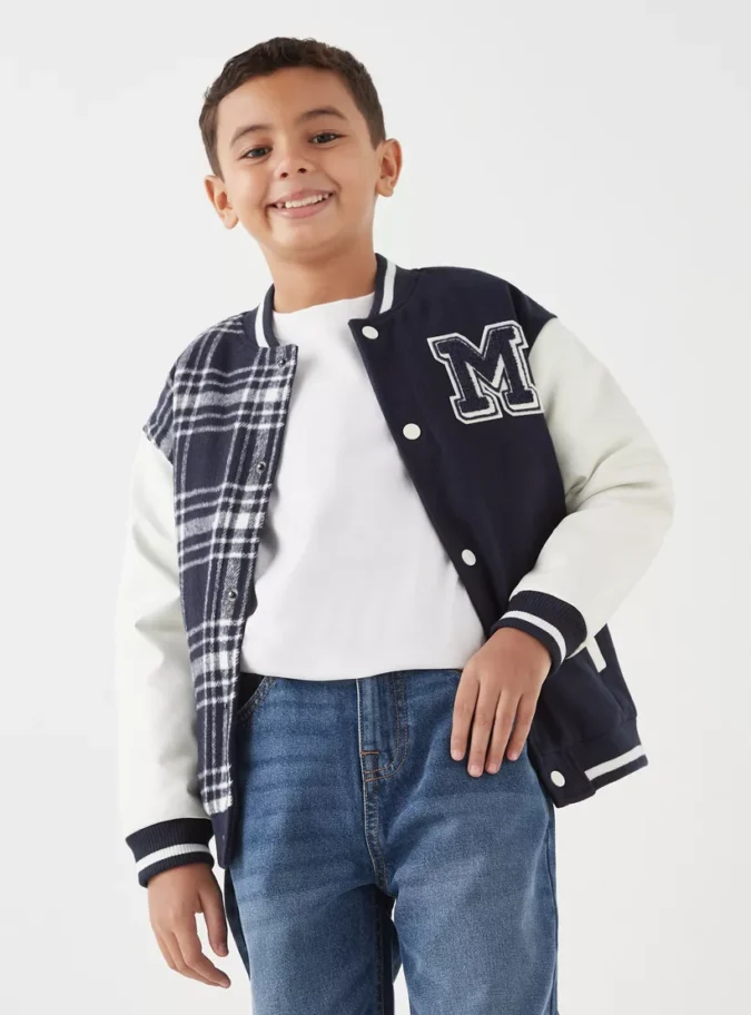 The Juniors Applique Detail Varsity Jacket with Button Closure is a trendy blend of classic varsity style and modern comfort. Designed with bold applique details on the front and sleeves, this jacket adds a youthful edge to any outfit. Its soft fabric and structured fit make it ideal for layering over casual wear, whether for school, outings, or weekend activities. With its timeless button closure, this piece offers both fashion and functionality, making it a must-have for juniors who love standout streetwear with a sporty vibe.