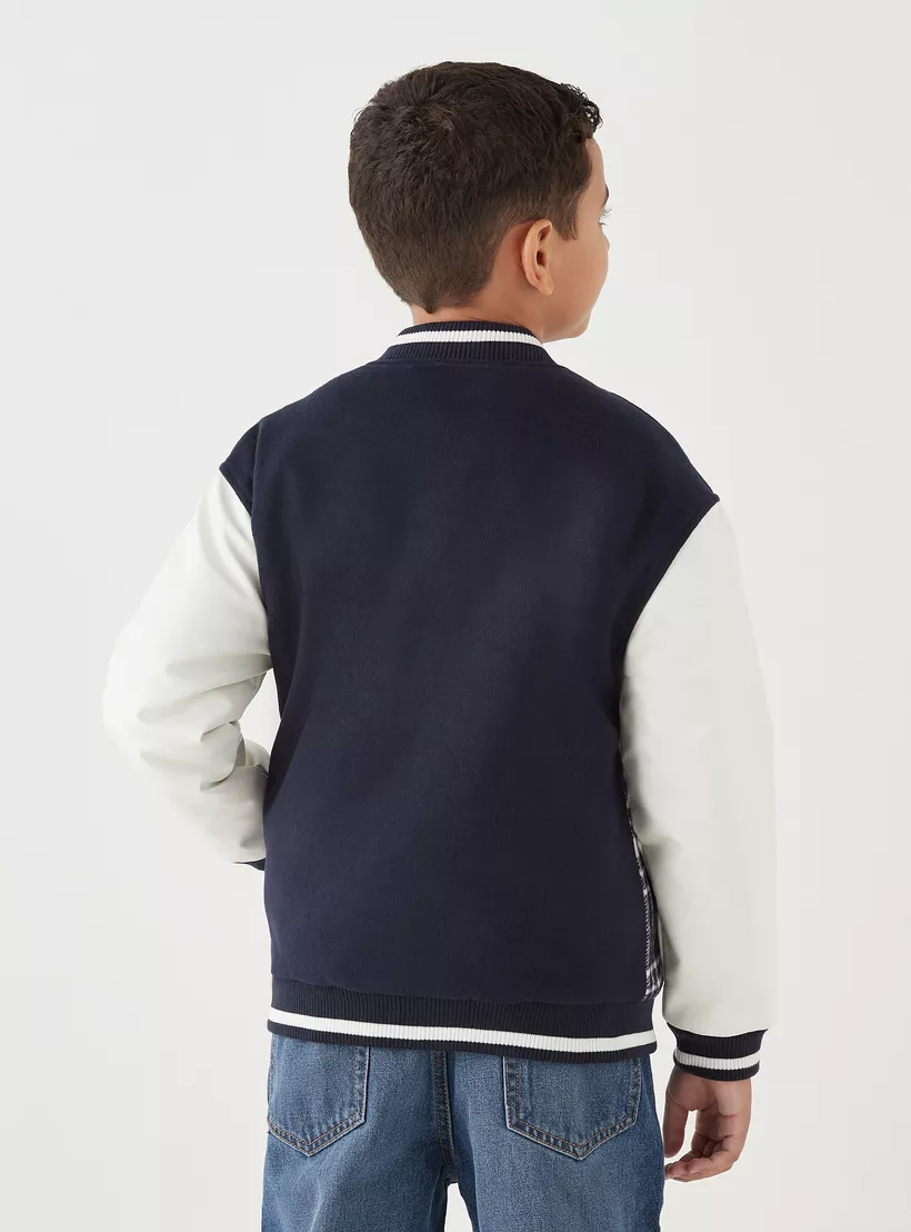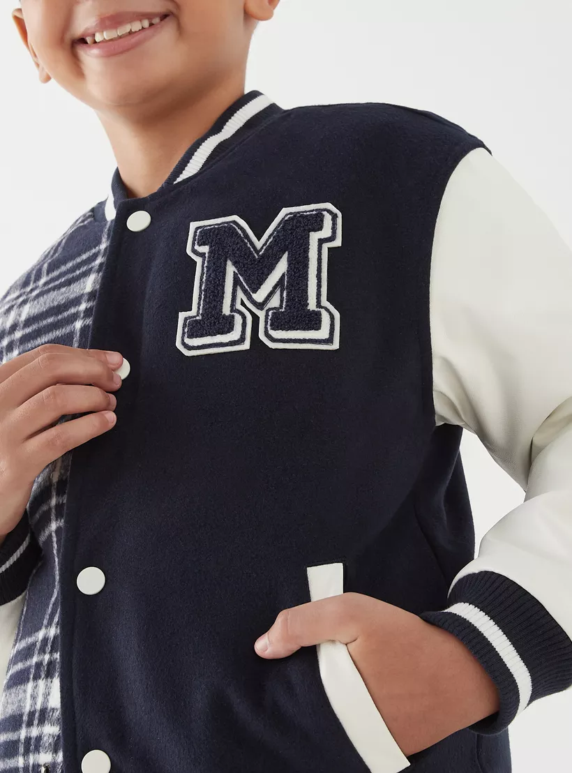 Juniors Applique Detail Varsity Jacket with Button Closure