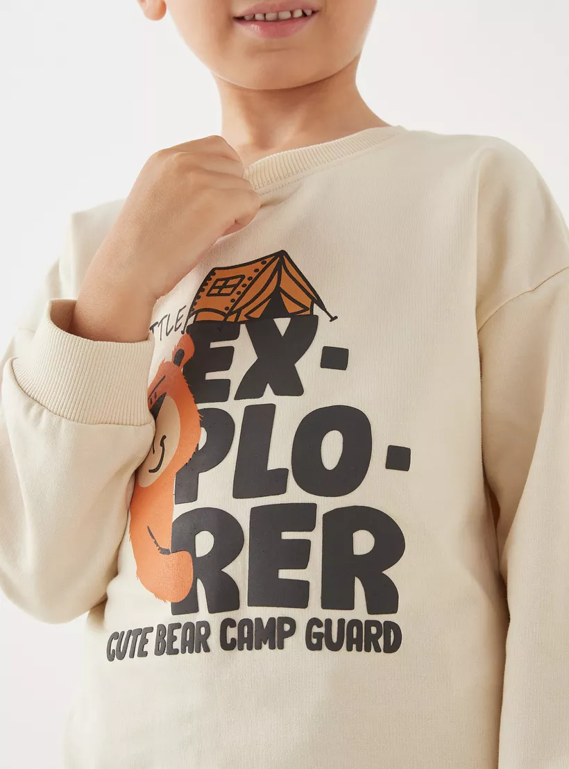 Juniors Bear Print Sweatshirt with Long Sleeves