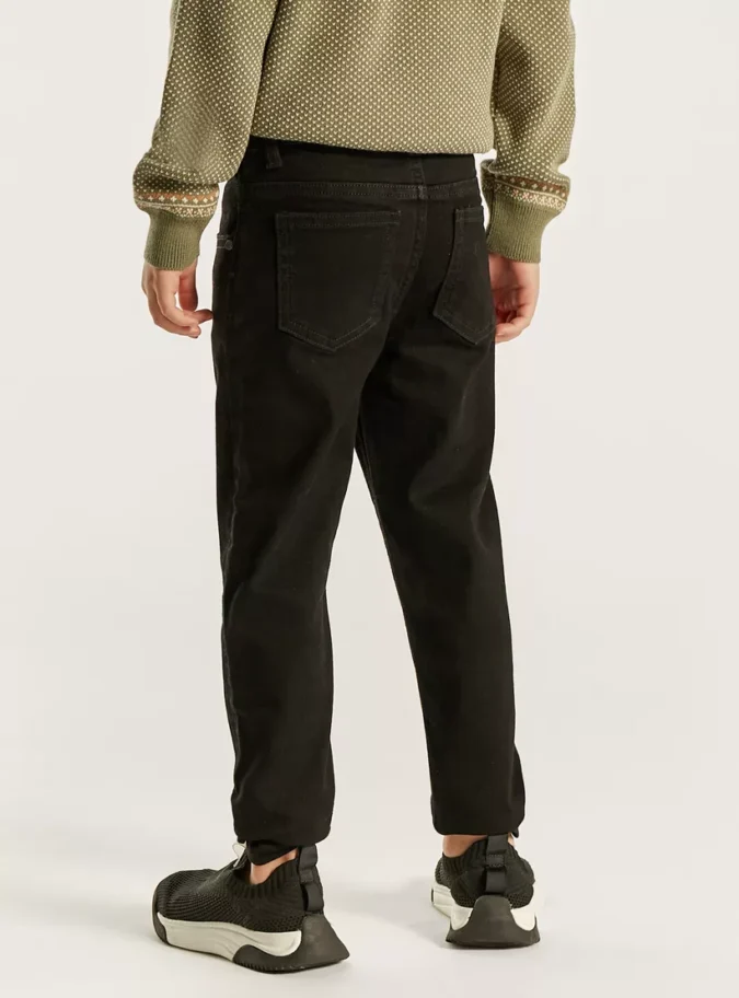 These slim-fit jeans are crafted from a cotton blend, ensuring a comfortable and breathable fit. The fabric’s stretchability adds flexibility, allowing for ease of movement. The jeans feature a slim silhouette, providing a modern and trendy appearance. They come in a solid dark wash, making them versatile and easy to pair with various tops.