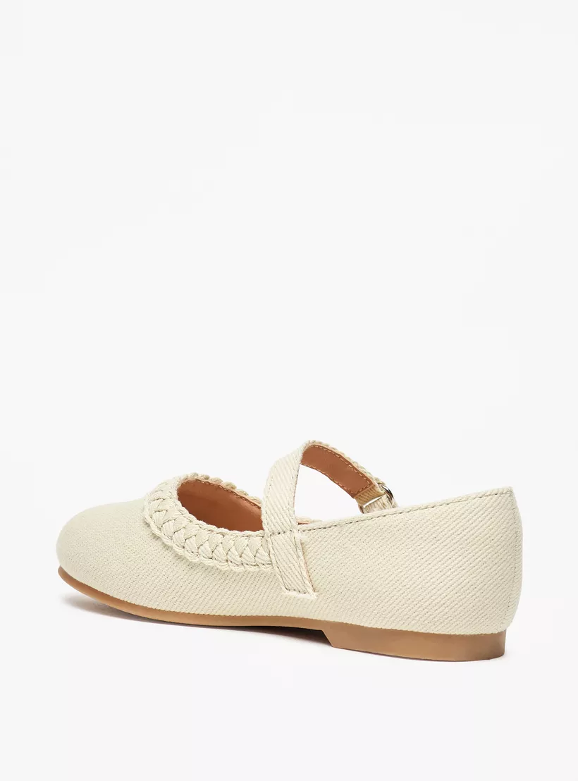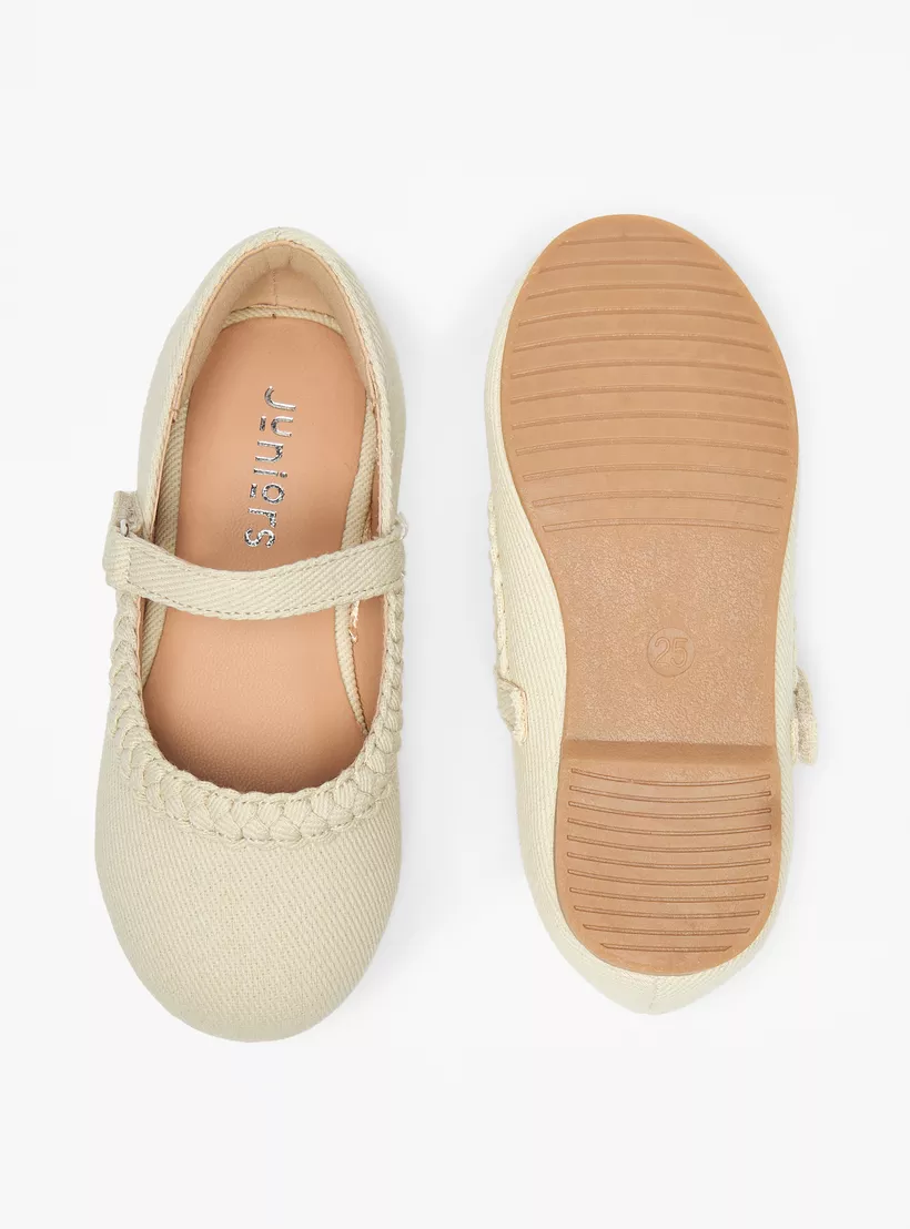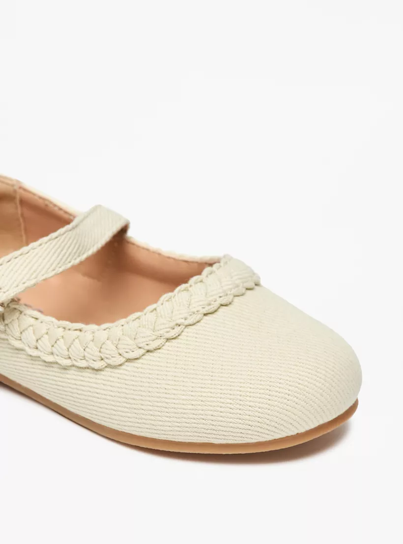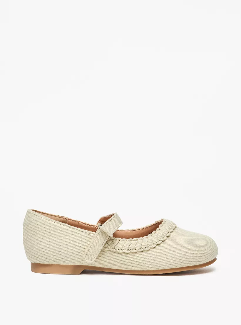 Juniors Braided Detail Ballerina Shoes with Hook and Loop Closure