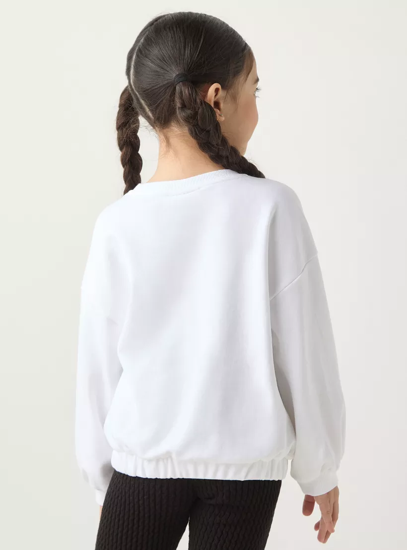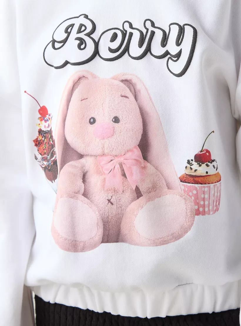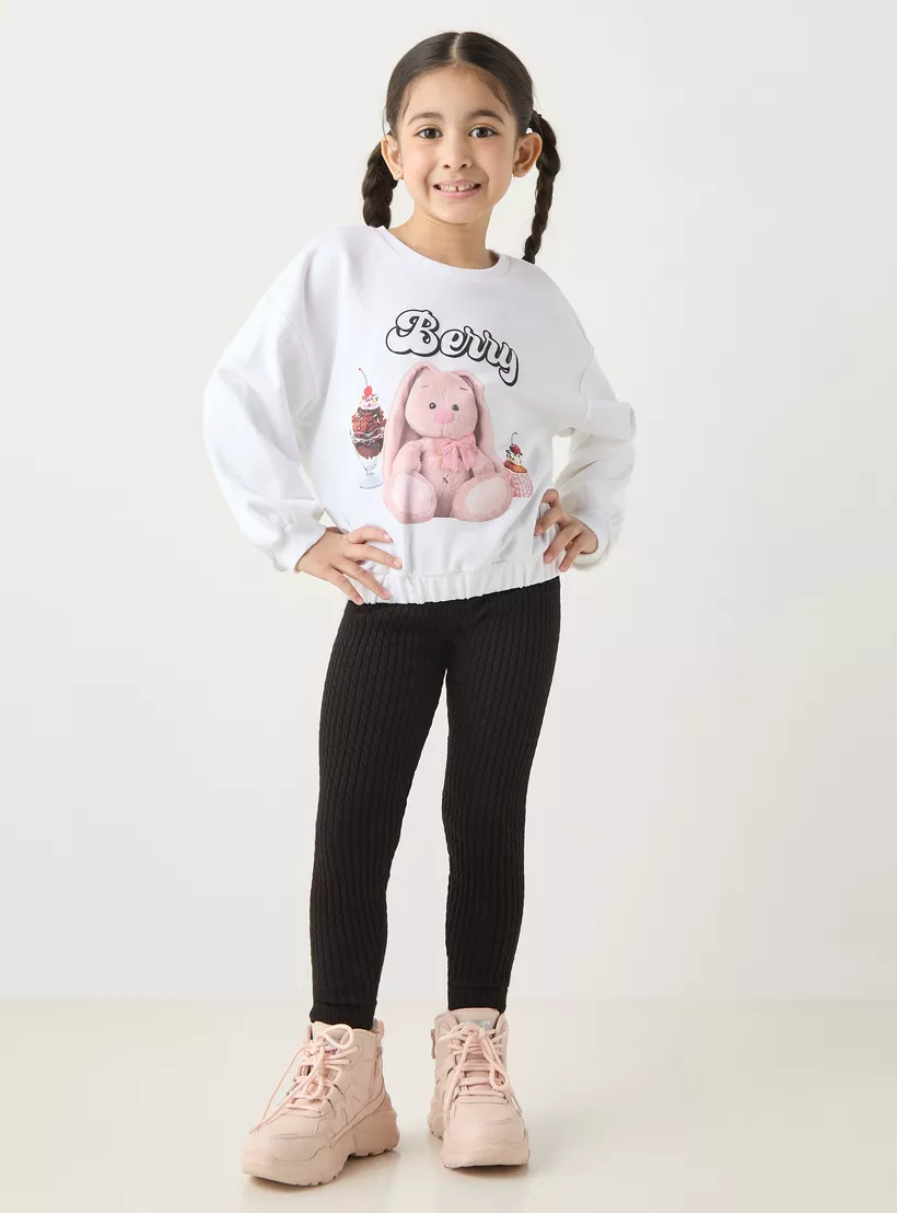 Juniors Bunny Print Pullover with Crew Neck and Long Sleeves