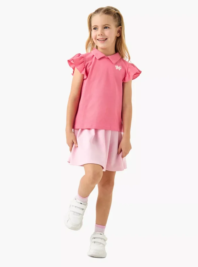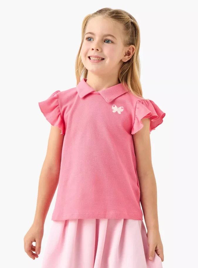 The Juniors Butterfly Embroidered Polo T-shirt with Ruffle Sleeves combines comfort with a touch of whimsy, making it a must-have in your little one’s wardrobe. Crafted from soft, breathable fabric, this T-shirt offers both style and comfort. The delicate butterfly embroidery adds a fun, colorful twist, while the ruffle sleeves bring a playful and feminine flair. Perfect for casual outings, playdates, or school days, this T-shirt pairs easily with jeans, skirts, or shorts, making it versatile and ideal for everyday wear.