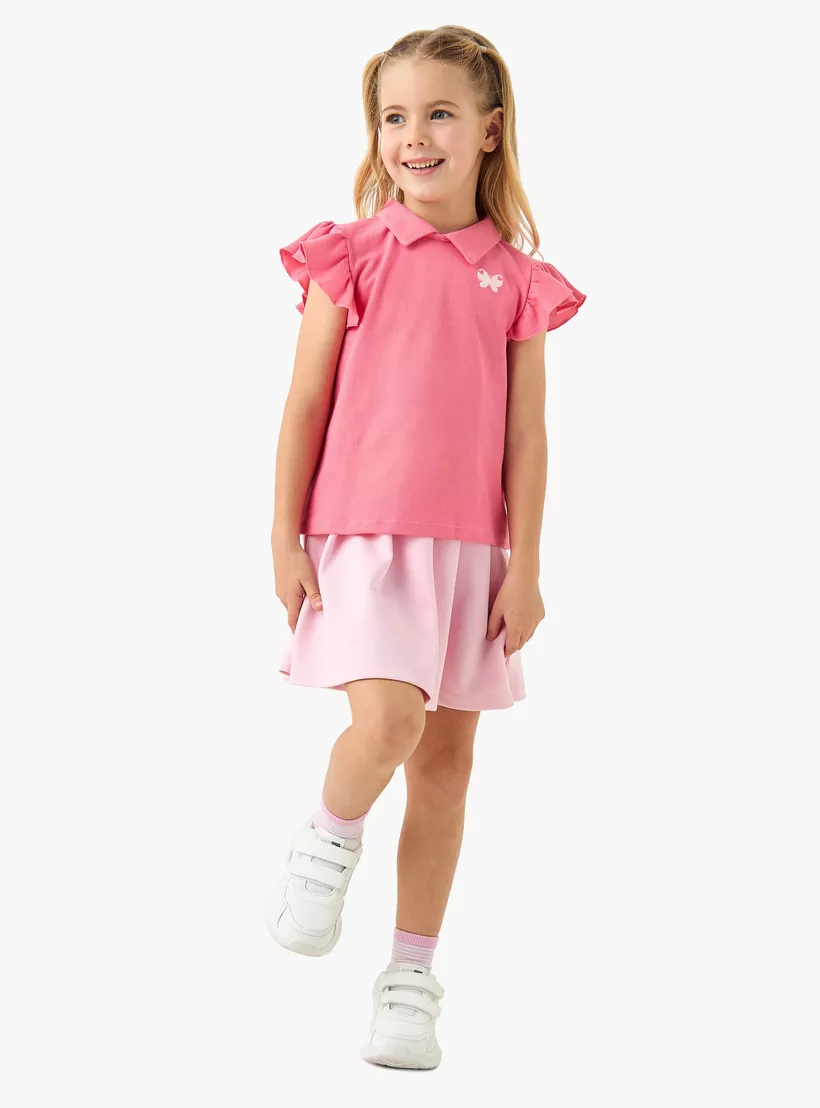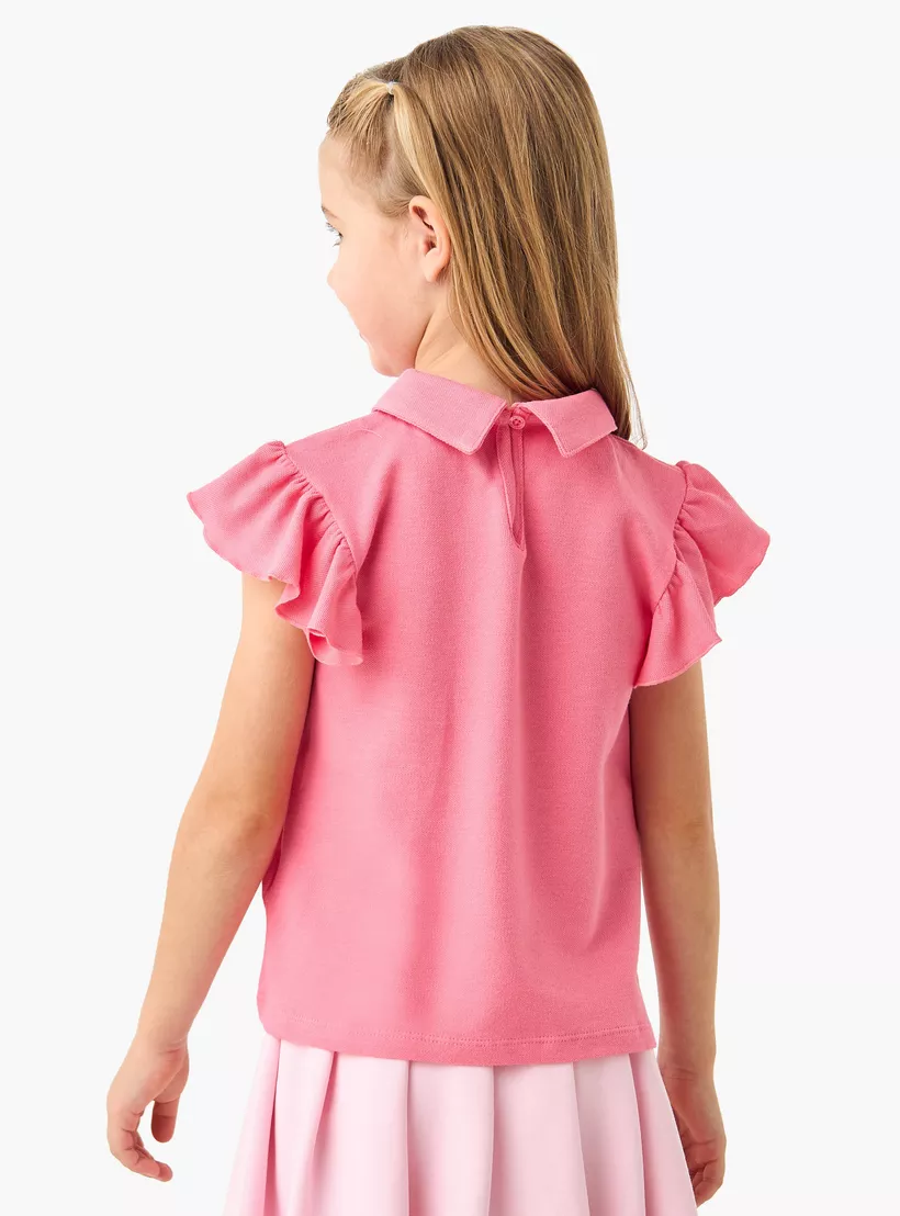 Juniors Butterfly Embroidered Polo T-shirt with Ruffle Sleeves