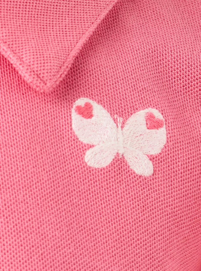 Delicate Butterfly Embroidery: Features a colorful and intricate butterfly design, adding a playful touch to the polo T-shirt.
