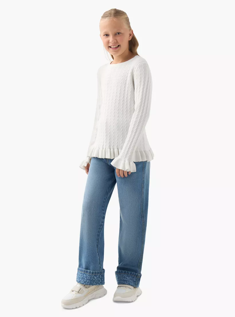 Juniors Cable Knit Pullover with Long Sleeves