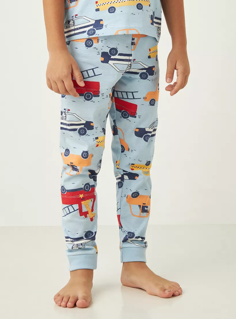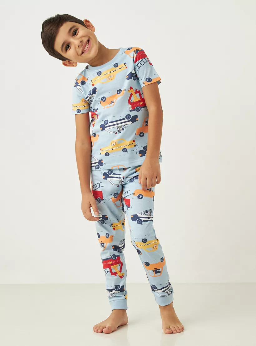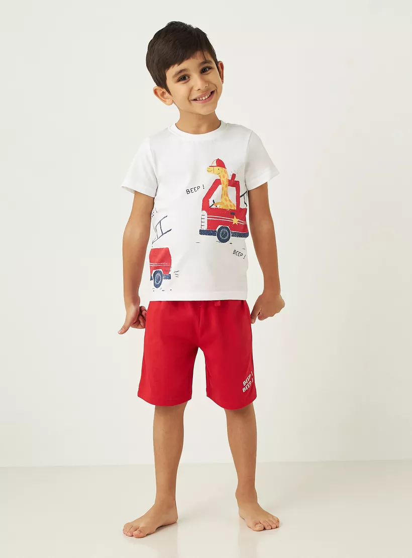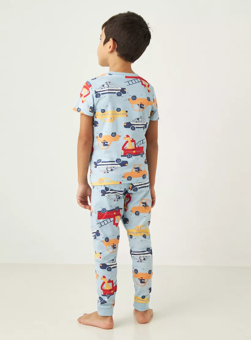 Juniors Car Print 4-Piece T-shirt with Shorts and Pyjama Set