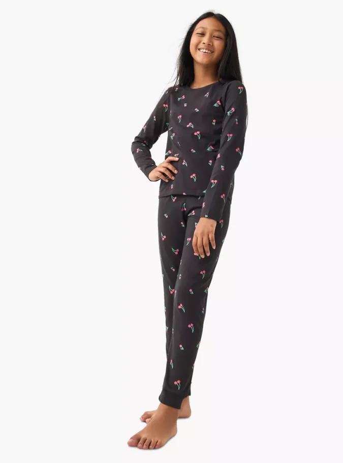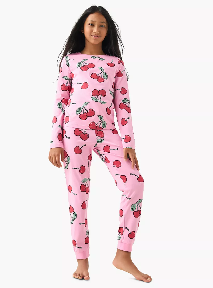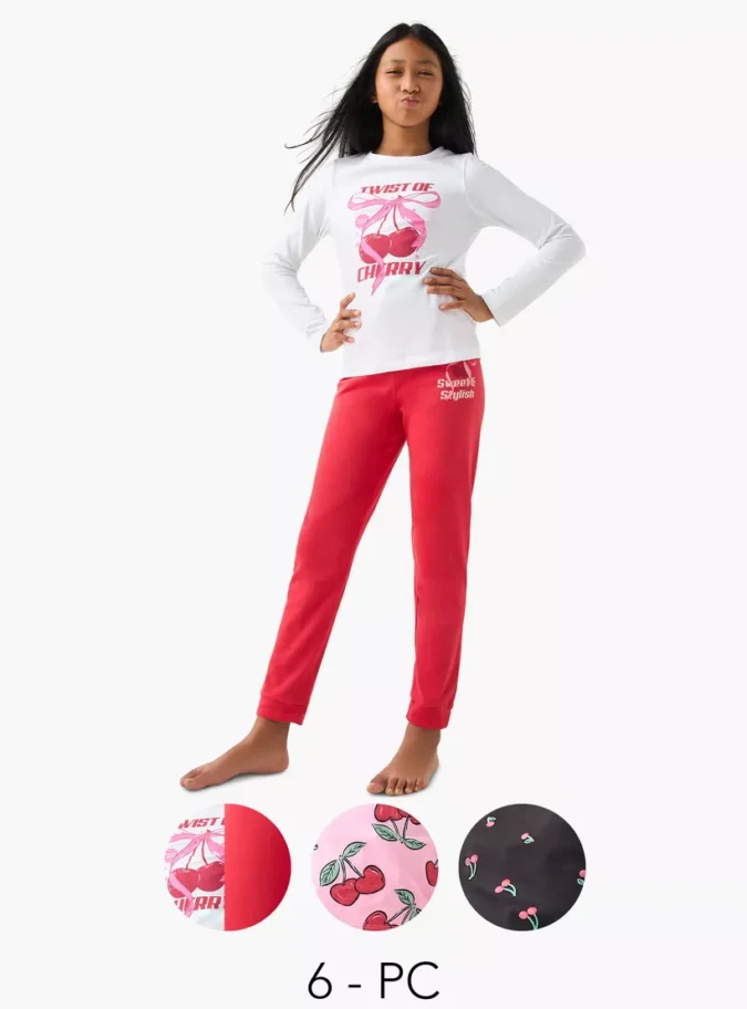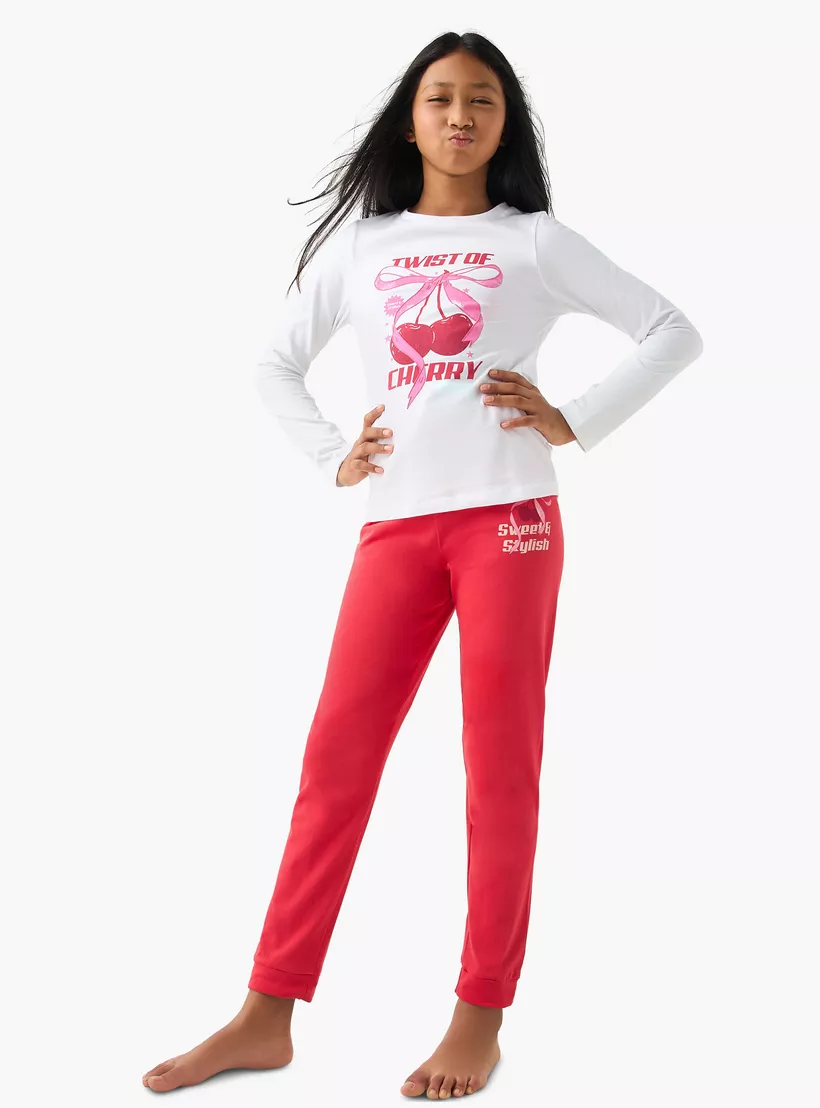 Juniors Cherry Print Long Sleeves T-shirt and Pyjamas – Set of 3