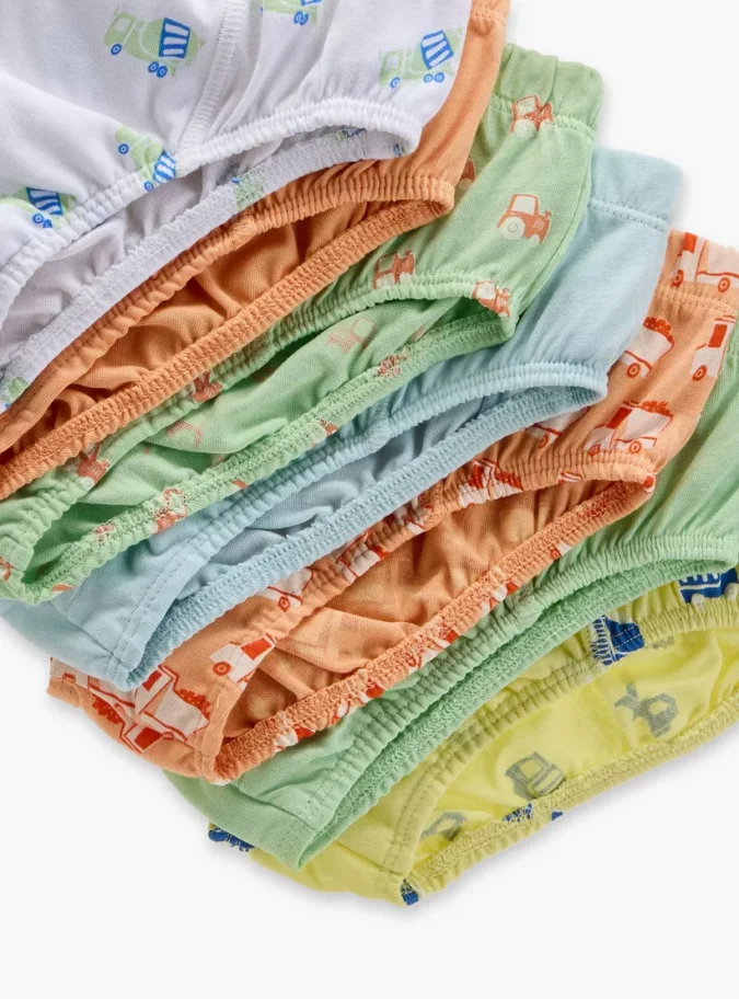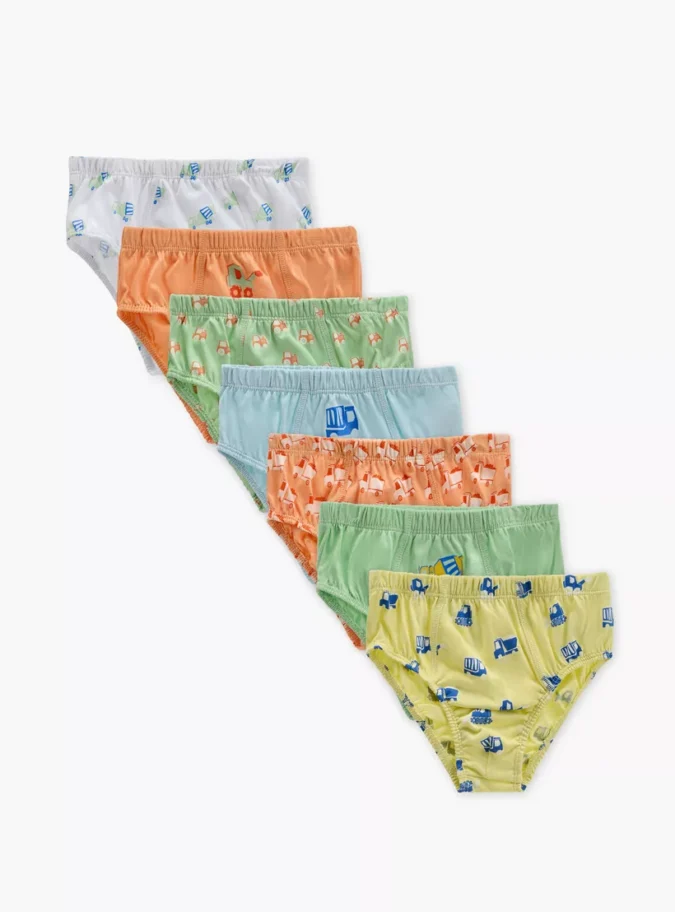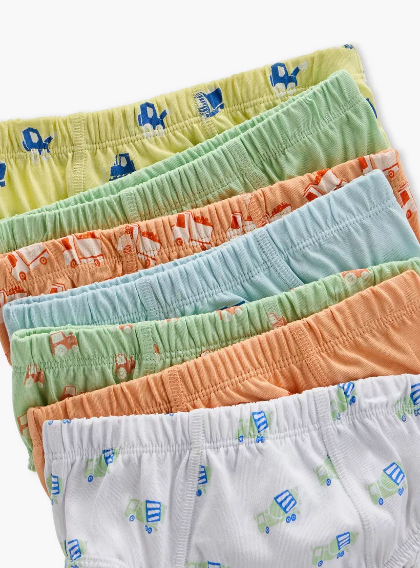 Juniors Construction Vehicle Print Briefs with Elasticated Waistband – Set of 7