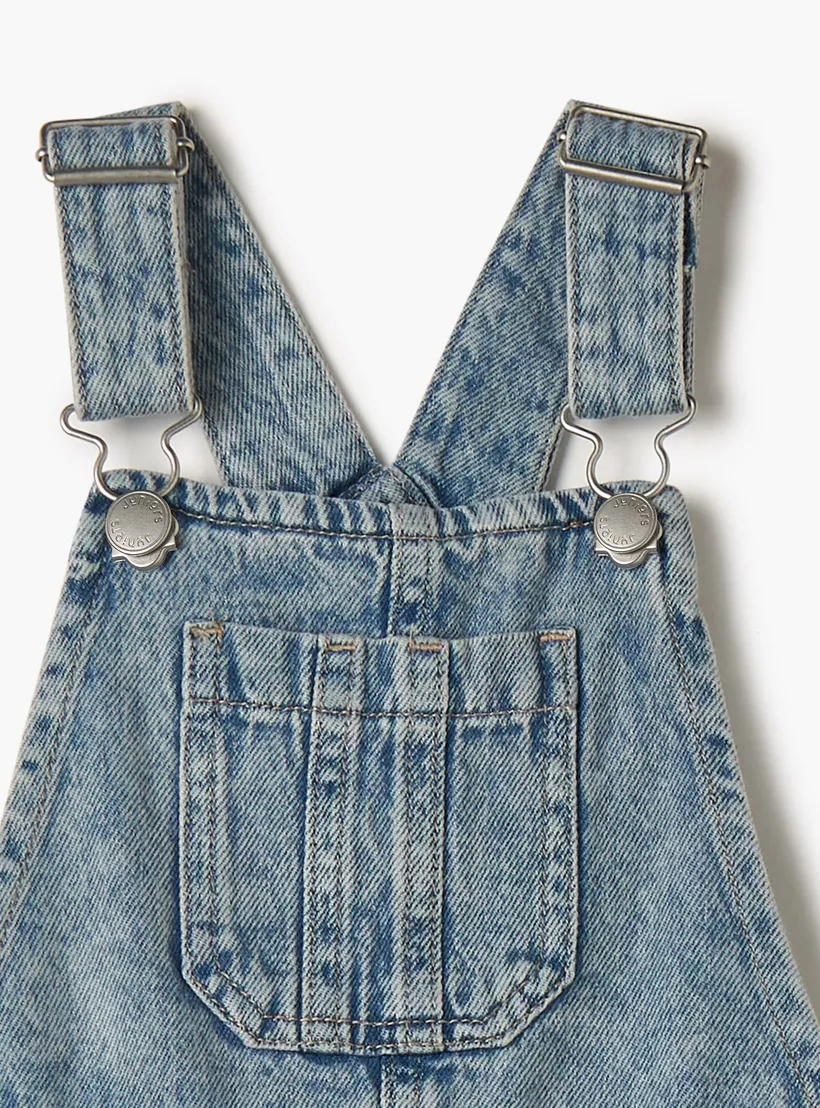 Juniors Denim Dungaree with Pocket and Adjustable Straps