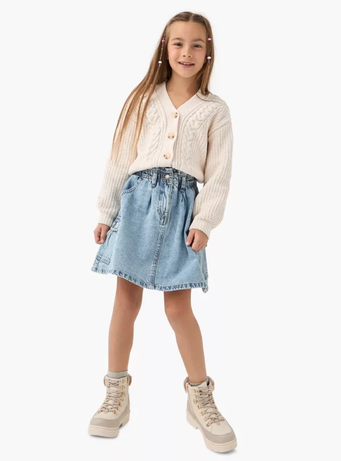 The Juniors Denim Skirt with Pockets and Button Closure is a timeless wardrobe essential designed for casual comfort and everyday style. Made from durable denim, it combines a classic silhouette with modern functionality. The front button closure adds a trendy detail, while the practical pockets make it both stylish and convenient. Perfect for pairing with t-shirts, blouses, or sweaters, this skirt is versatile enough for school, outings, and weekend wear.