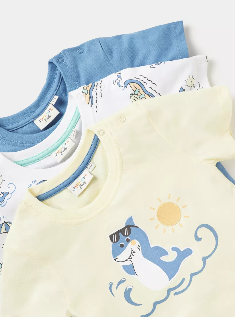 Juniors Dinosaur Graphic Print Crew Neck T-shirt with Short Sleeves – Set of 3