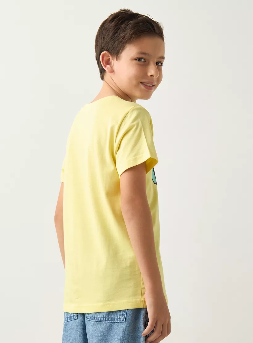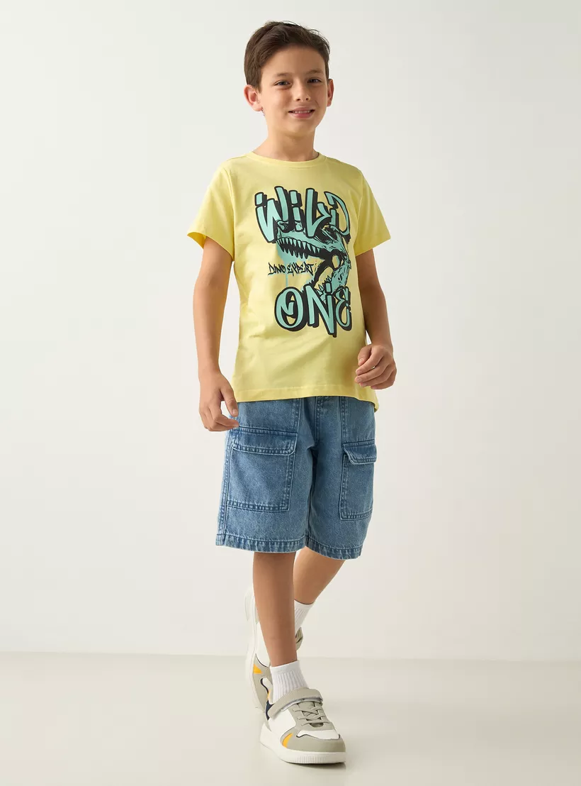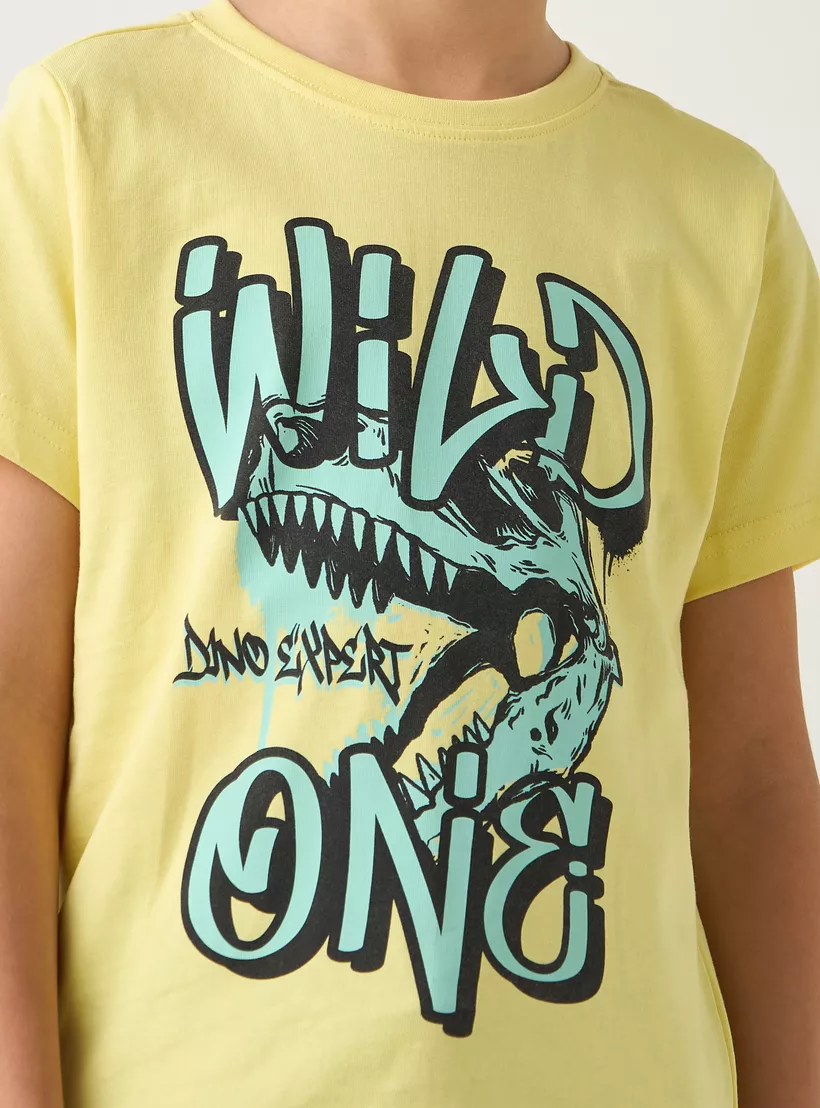 Juniors Dinosaur Graphic Print T-shirt with Short Sleeves and Crew Neck