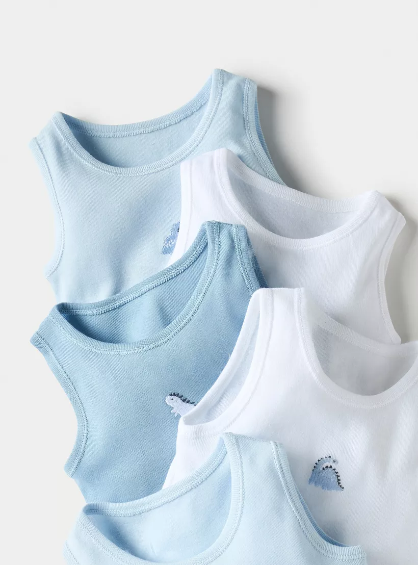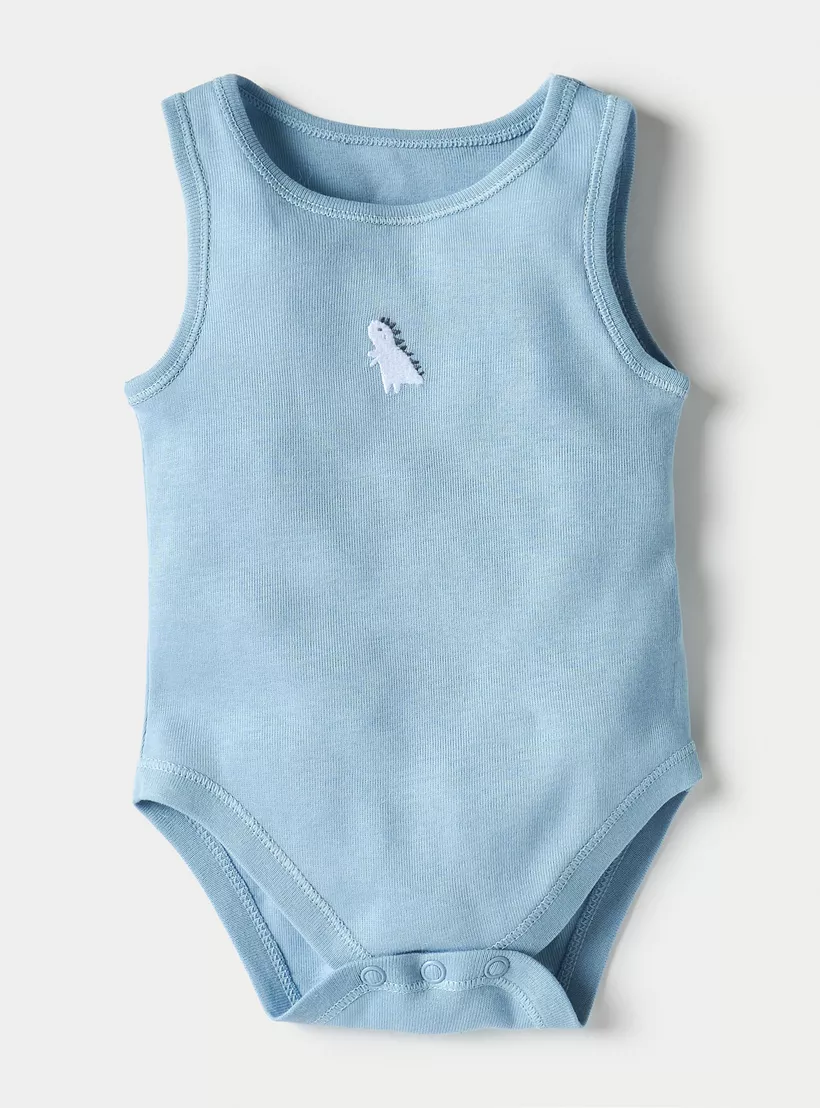 Juniors Dinosaur Print Sleeveless Bodysuit with Snap Button Closure – Set of 5