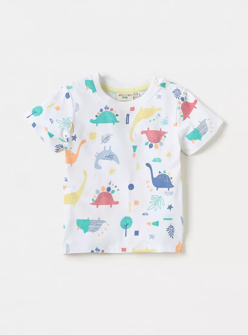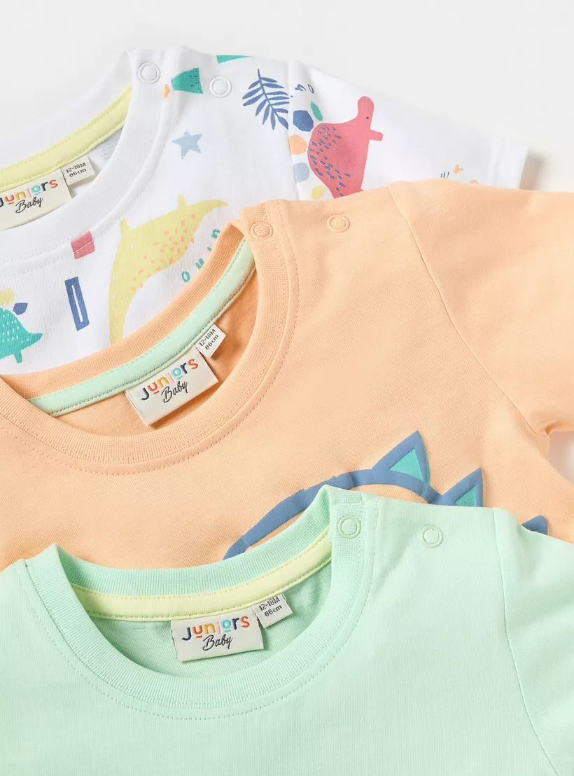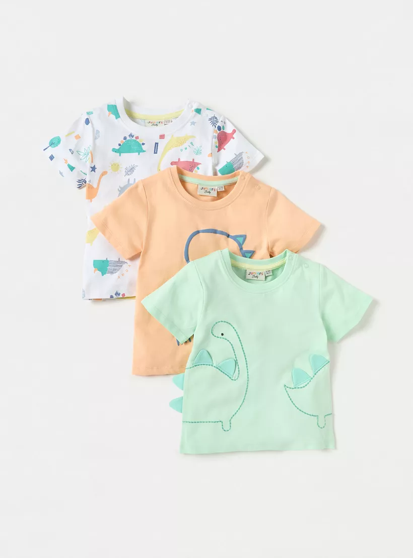 Juniors Dinosaur Print T-shirt with Crew Neck and Short Sleeves – Set of 3