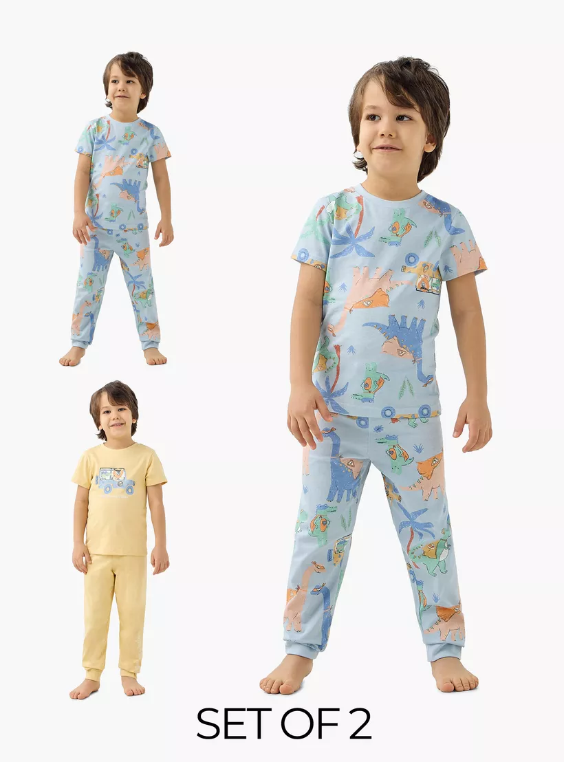 Pack of 2 Sets – Includes two T-shirts with coordinating pyjamas for easy outfit rotation.