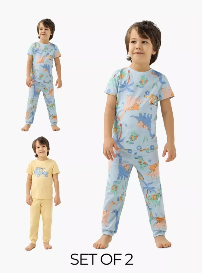 Pack of 2 Sets – Includes two T-shirts with coordinating pyjamas for easy outfit rotation.