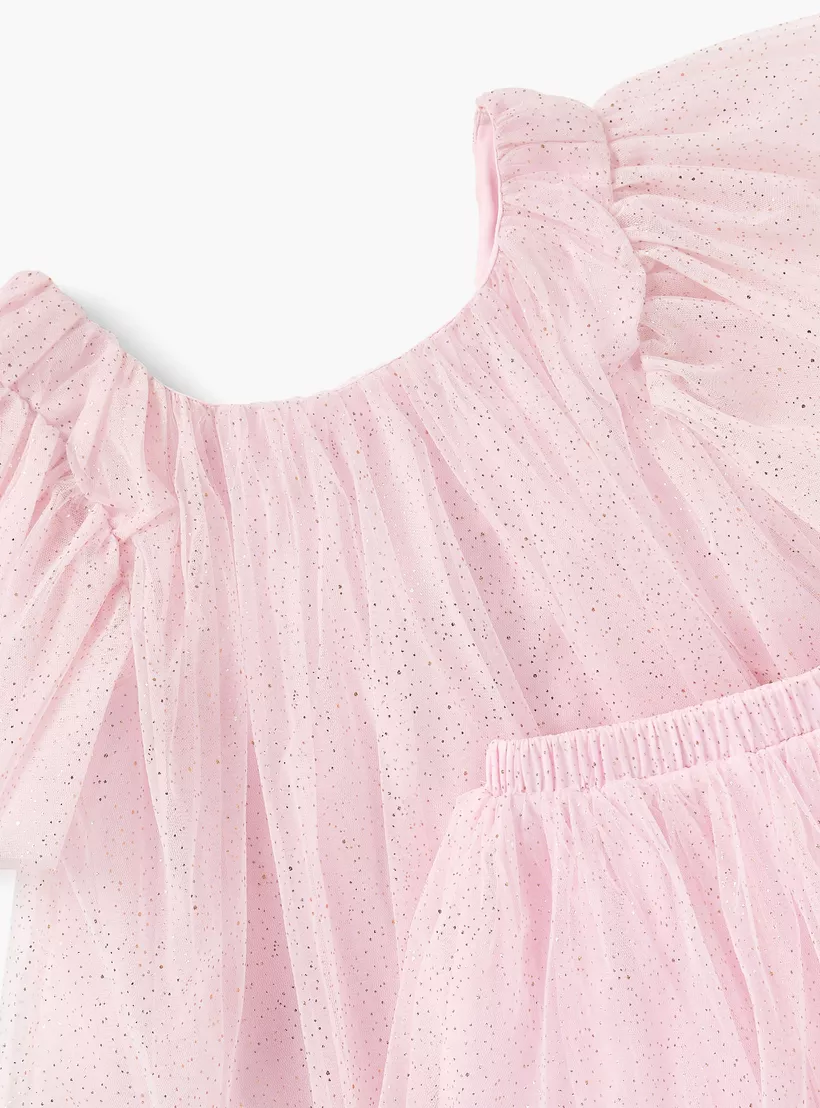 Elevate your little one’s style with this Juniors Embellished Round Neck Top and Skirt Set, designed for comfort and charm. The soft fabric ensures all-day ease, while delicate embellishments add a touch of sparkle for festive occasions or casual outings. The round neck top pairs beautifully with the matching skirt, making it a versatile outfit choice that balances elegance and playfulness.