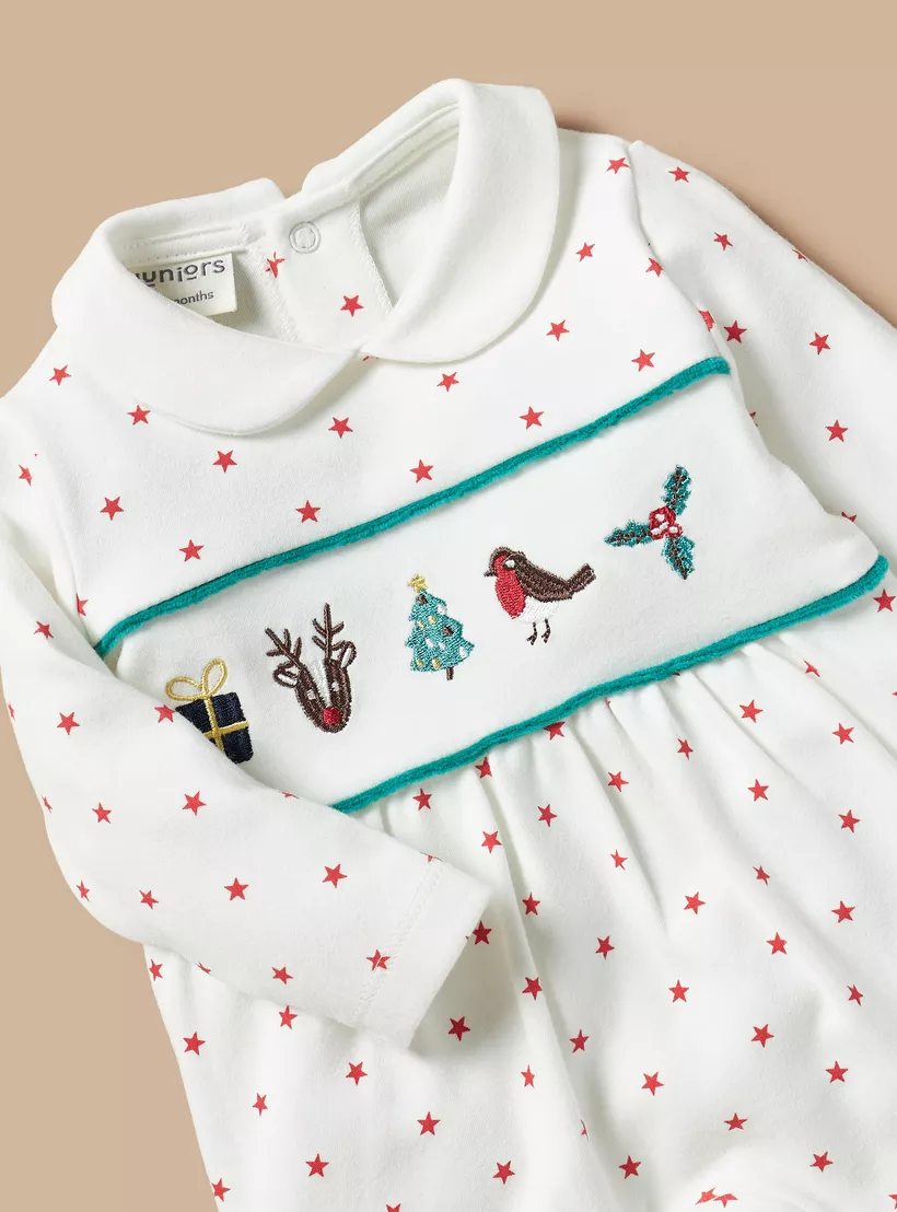 Juniors Embroidered Sleepsuit with Peter Pan Collar
