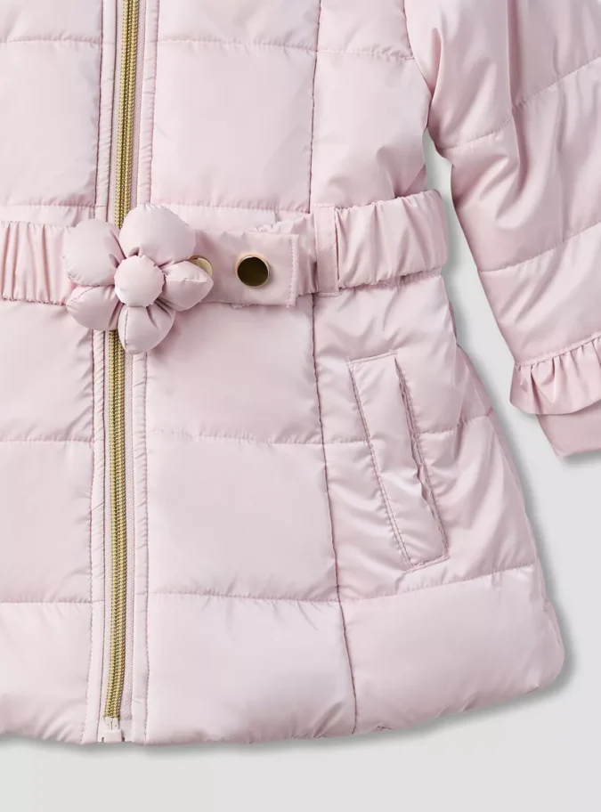 • Floral Accents – Adds a fresh, feminine detail to a classic puffer style.