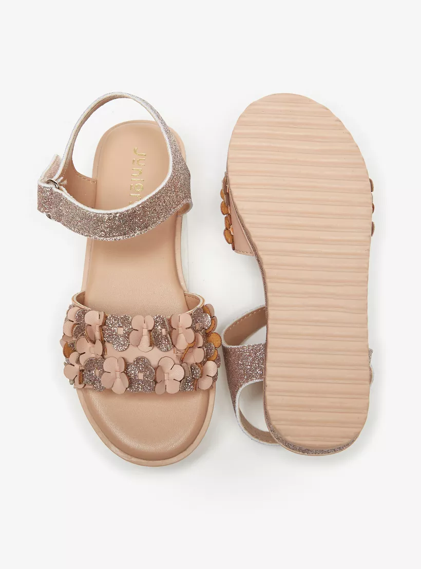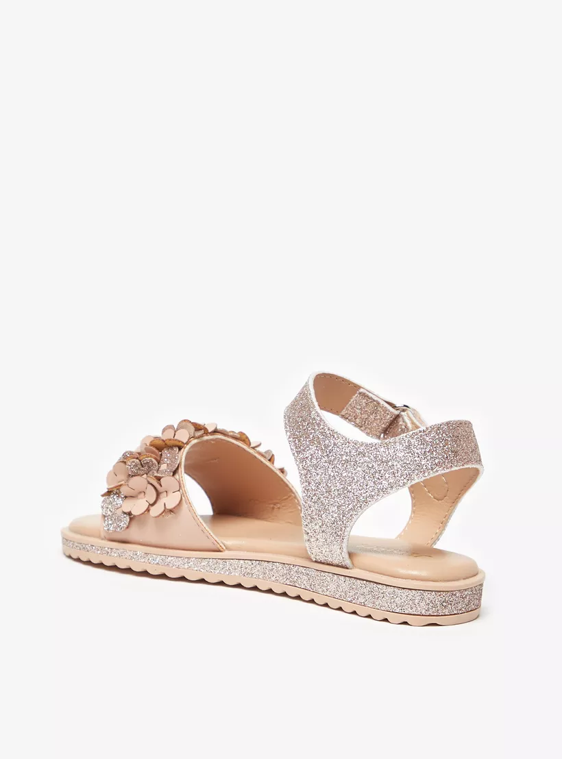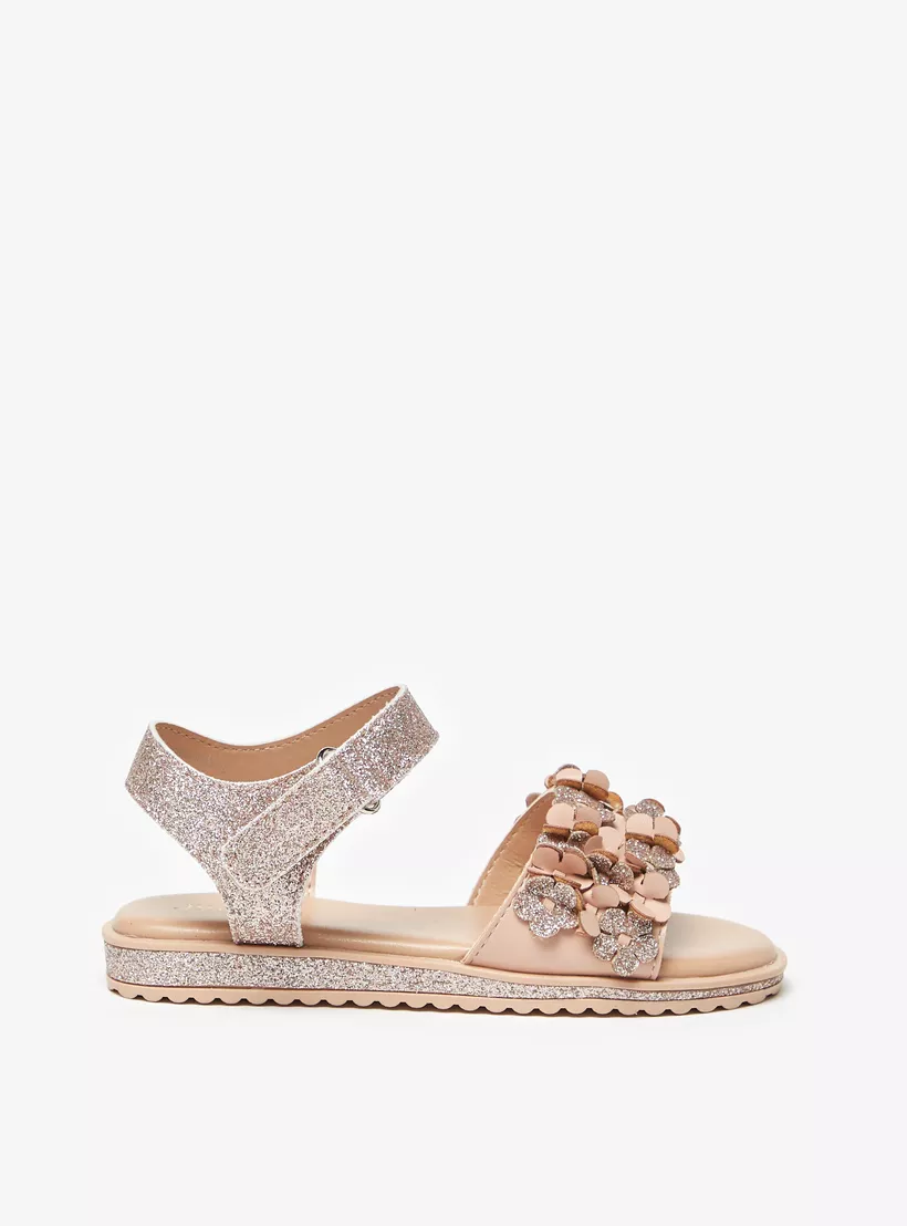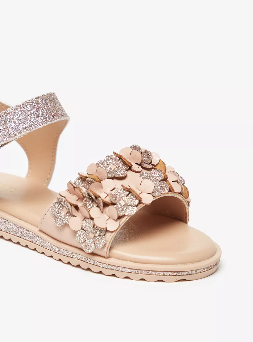 Juniors Floral Accent Sandals with Hook and Loop Closure
