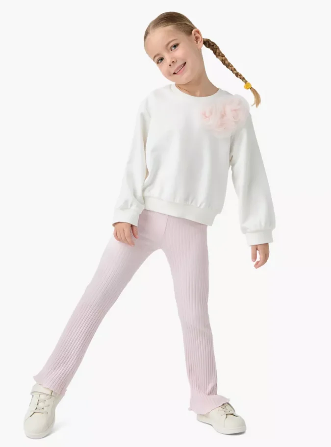 • Stylish Two-Piece Set – Includes a sweatshirt with floral accent details and coordinating leggings.