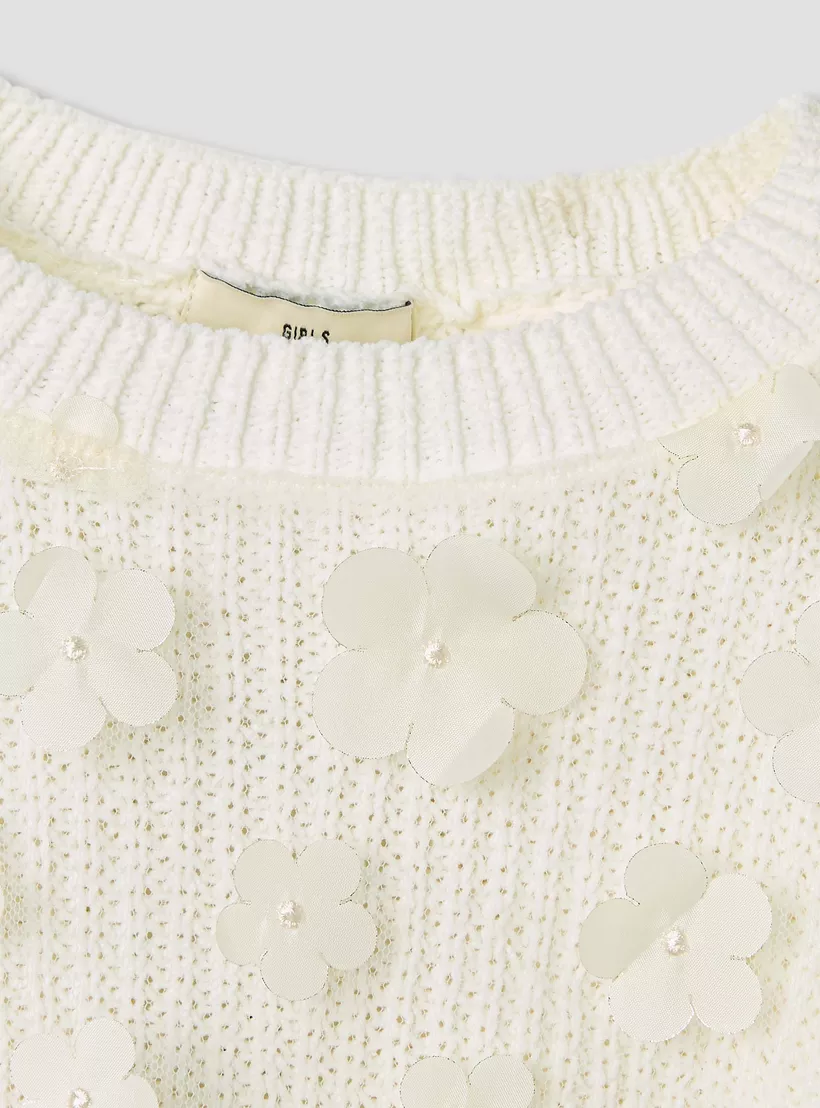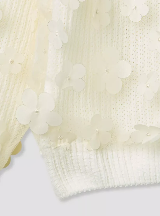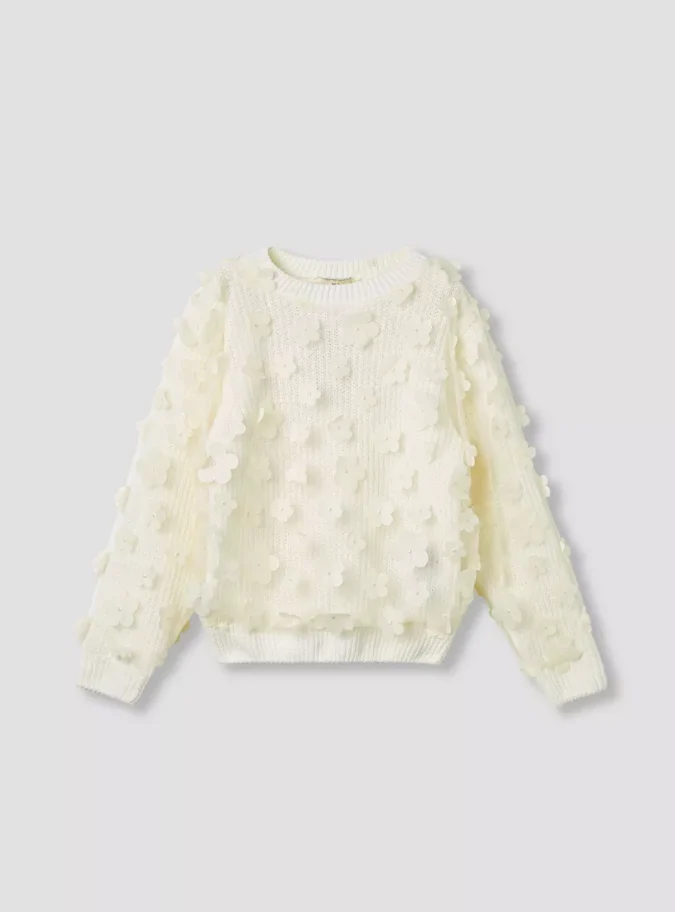 Stylish Floral Appliques: Adds a feminine and playful charm to the sweater.