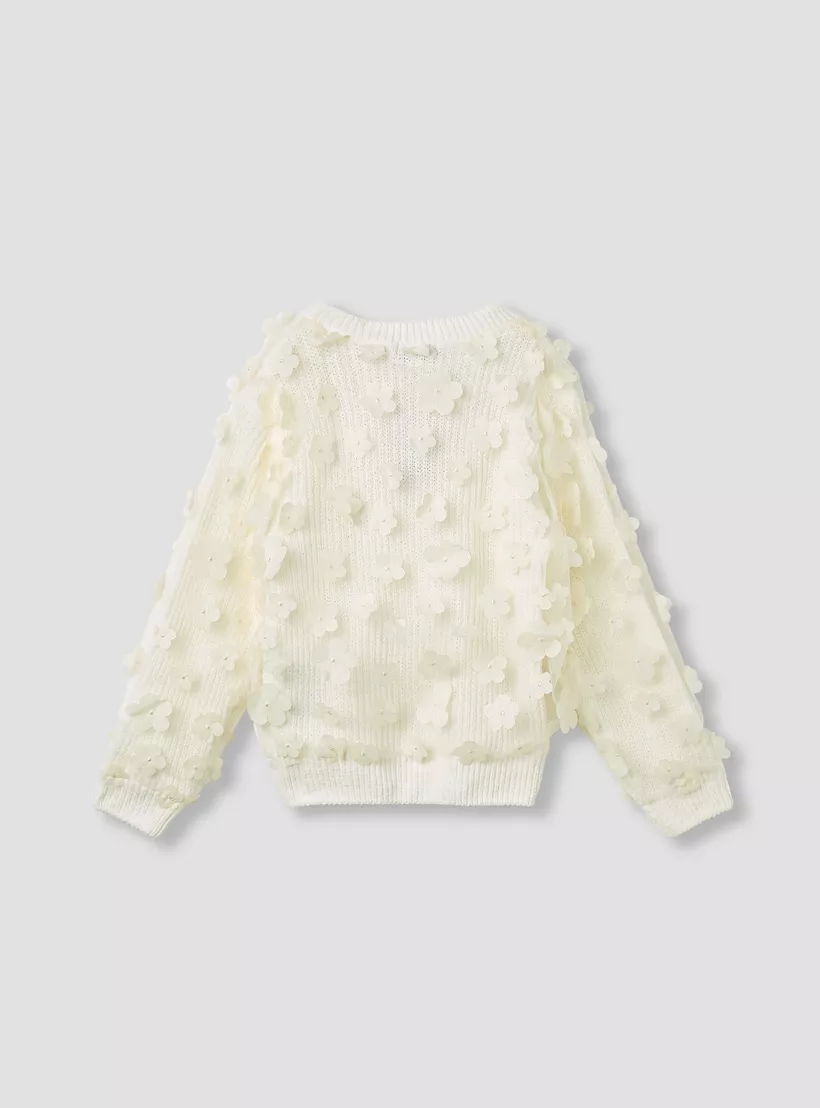 Juniors Floral Applique Ribbed Sweater with Long Sleeves