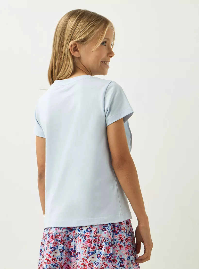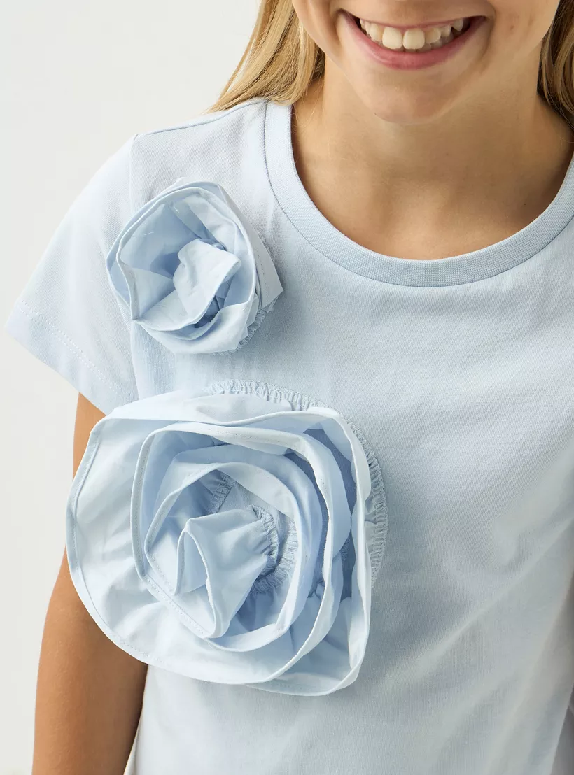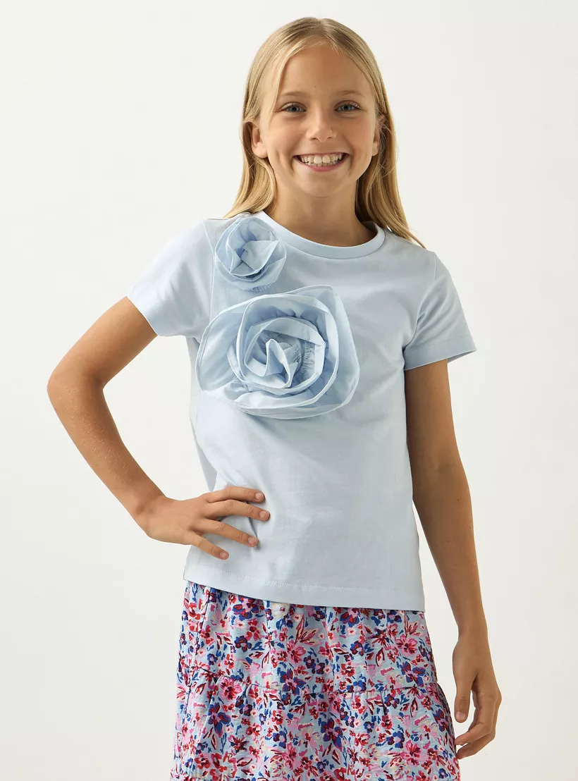 Juniors Floral Applique T-shirt with Short Sleeves