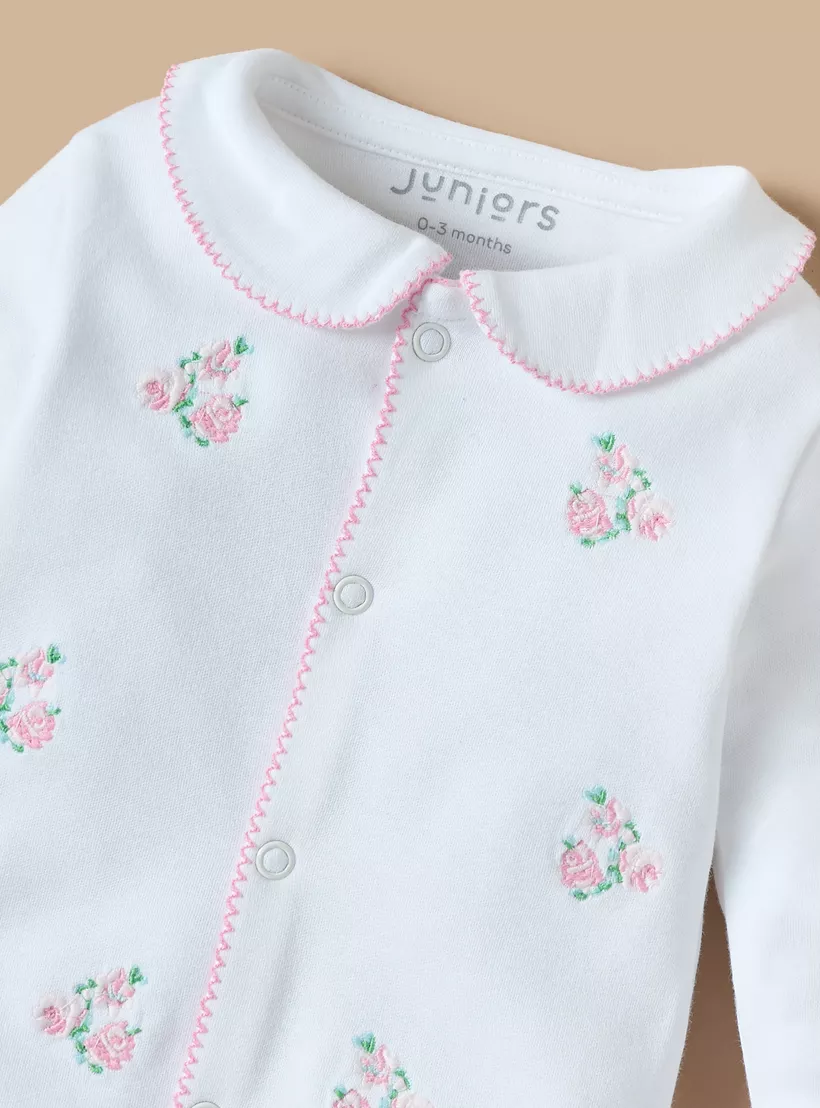 Juniors Floral Embroidered Closed Feet Sleepsuit with Long Sleeves