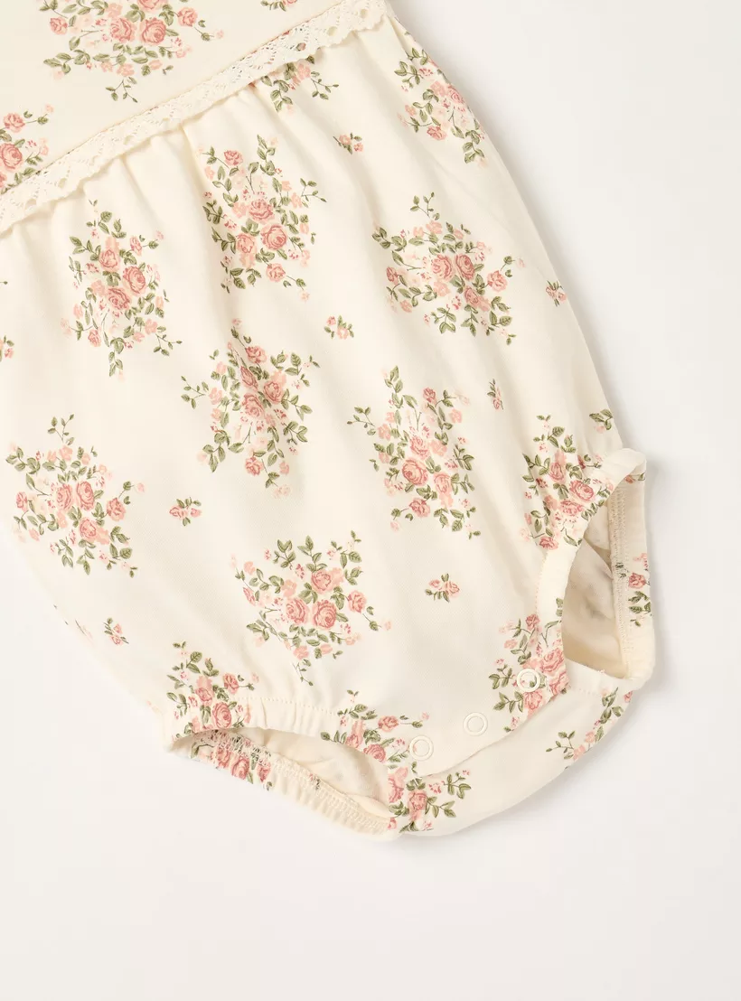 Juniors Floral Print Romper with Snap Button Closure