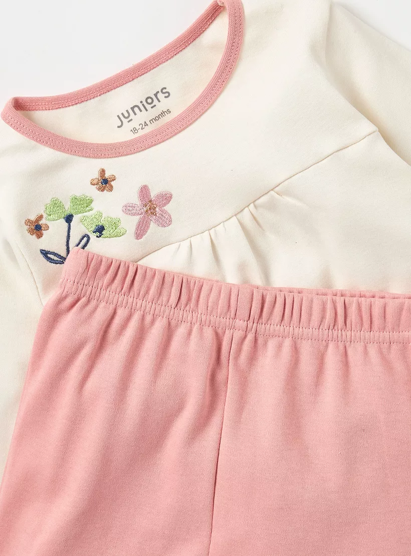 The Juniors Floral Print T-shirt and Pyjama Set is a stylish yet comfortable outfit designed for little ones who deserve both fashion and ease. Featuring a soft cotton T-shirt with a playful floral print paired with matching pyjama bottoms, this set is perfect for daily wear, bedtime, or casual outings. The breathable fabric ensures all-day comfort, while the vibrant floral design adds a cheerful touch to their wardrobe.