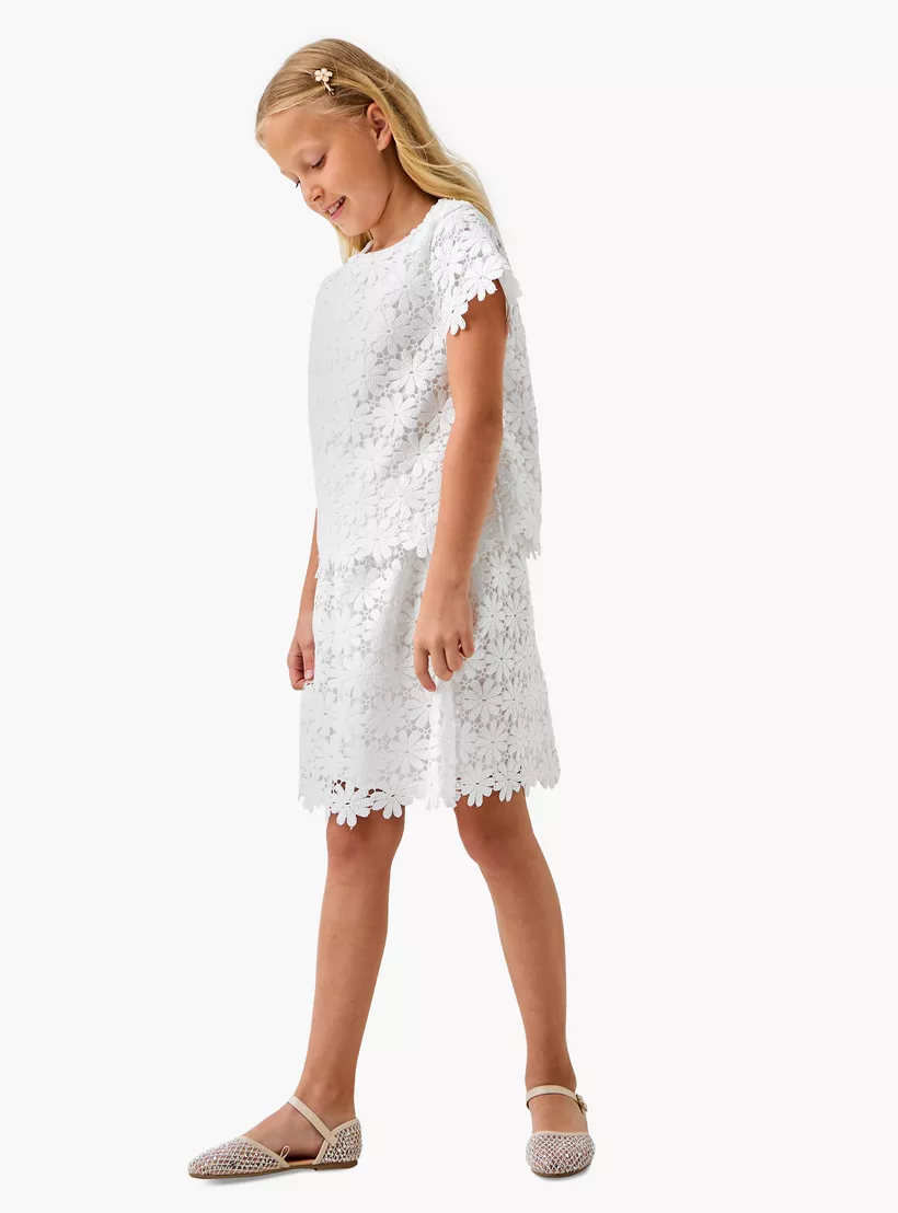 Juniors Floral Sequinned Crochet Skirt with Elasticated Waistband